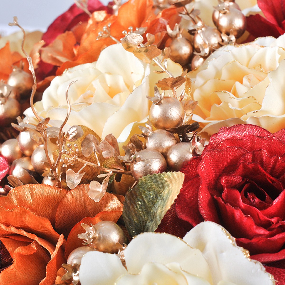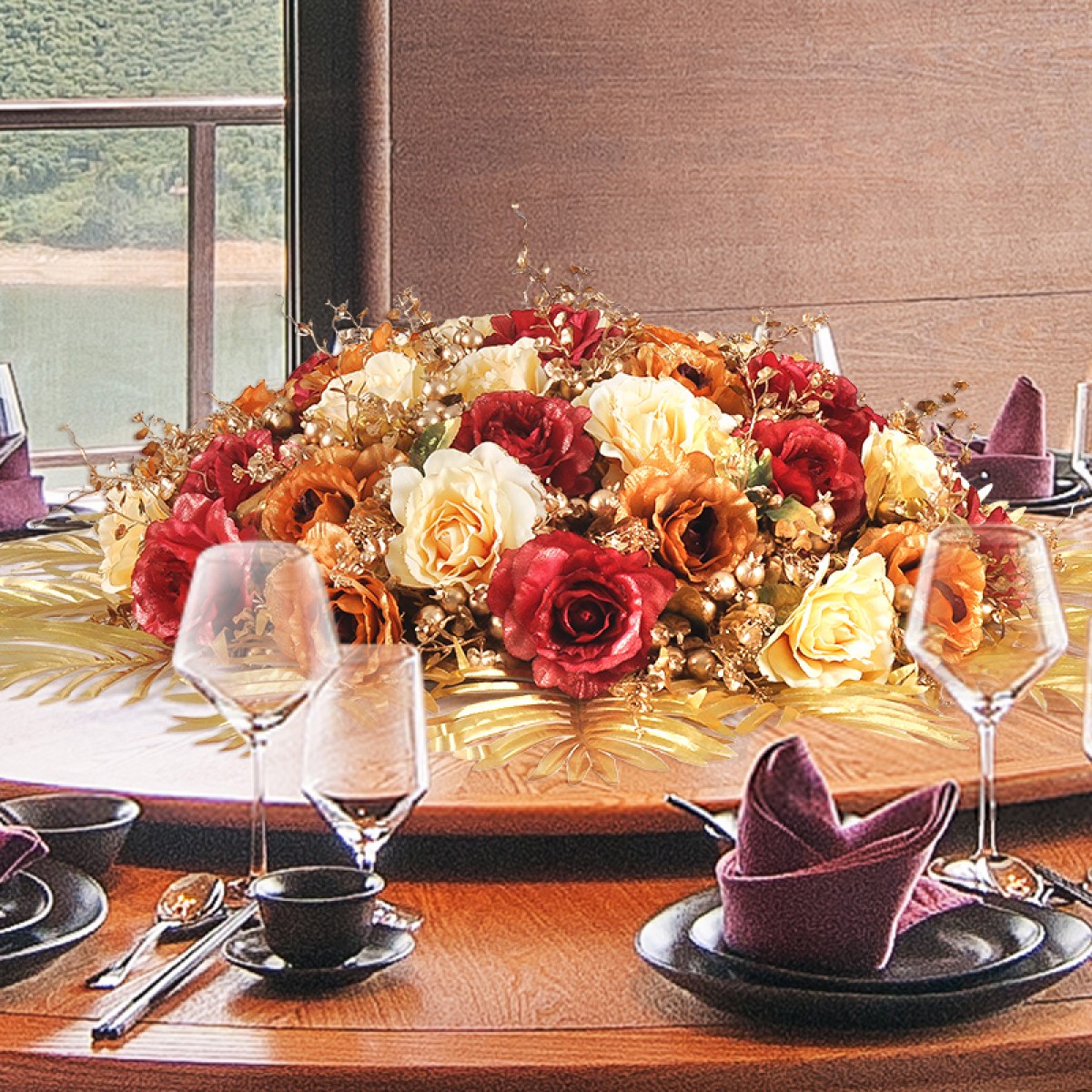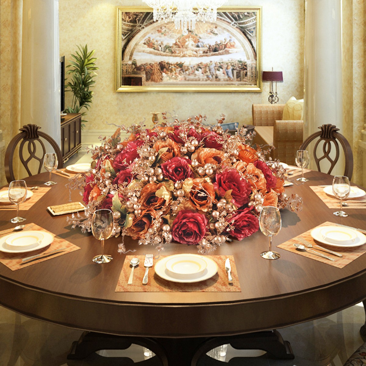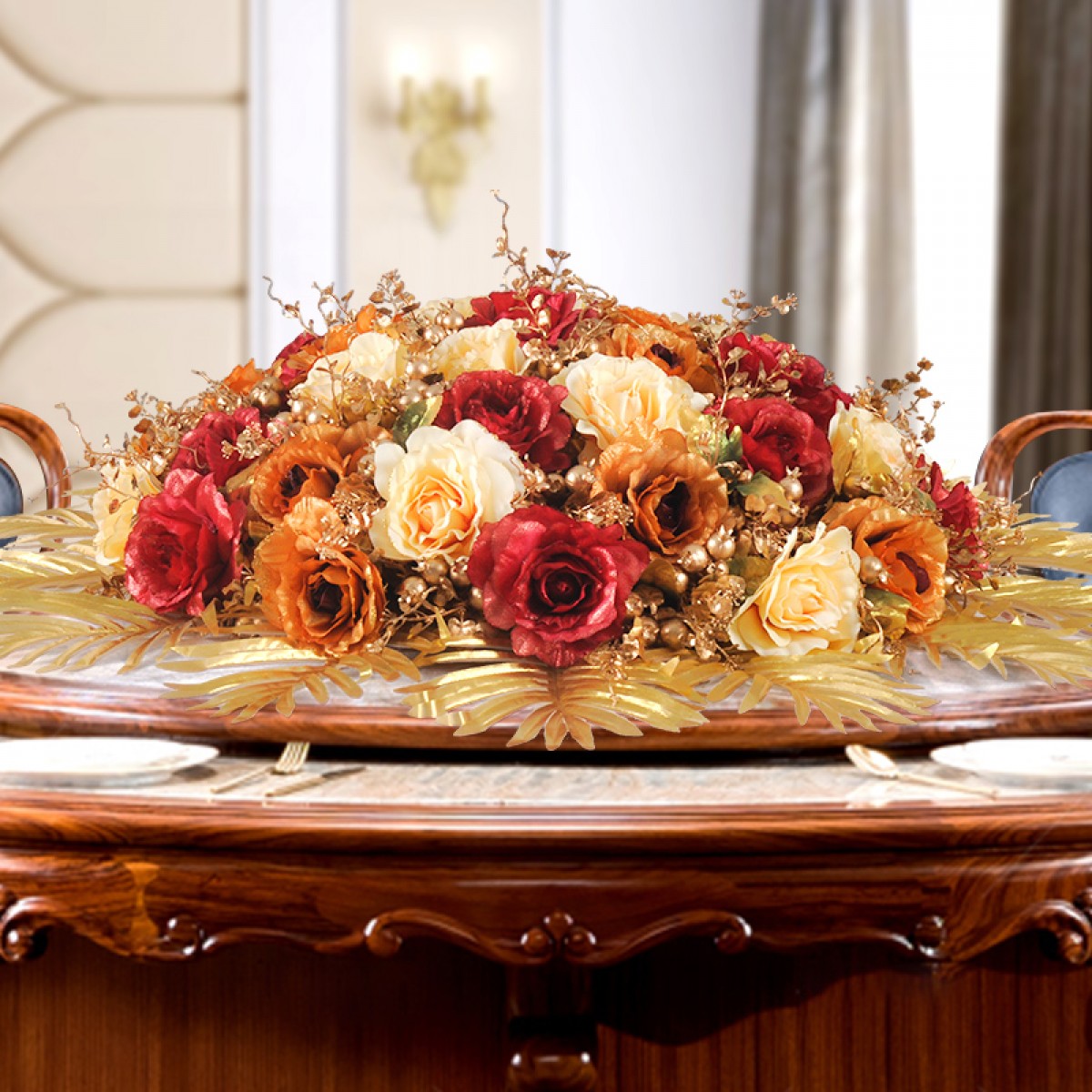 商品名称:国产 仿真花欧式大玫瑰金边餐桌圆桌会议室摆件插花花艺套装绢花假花