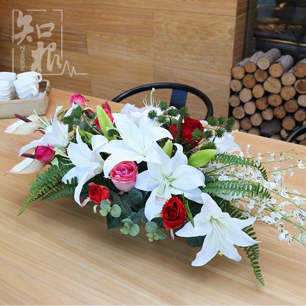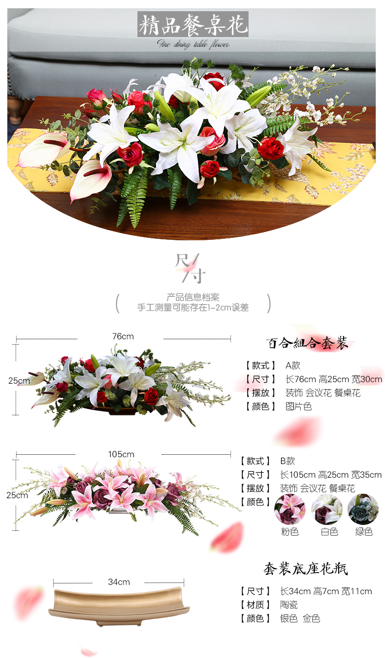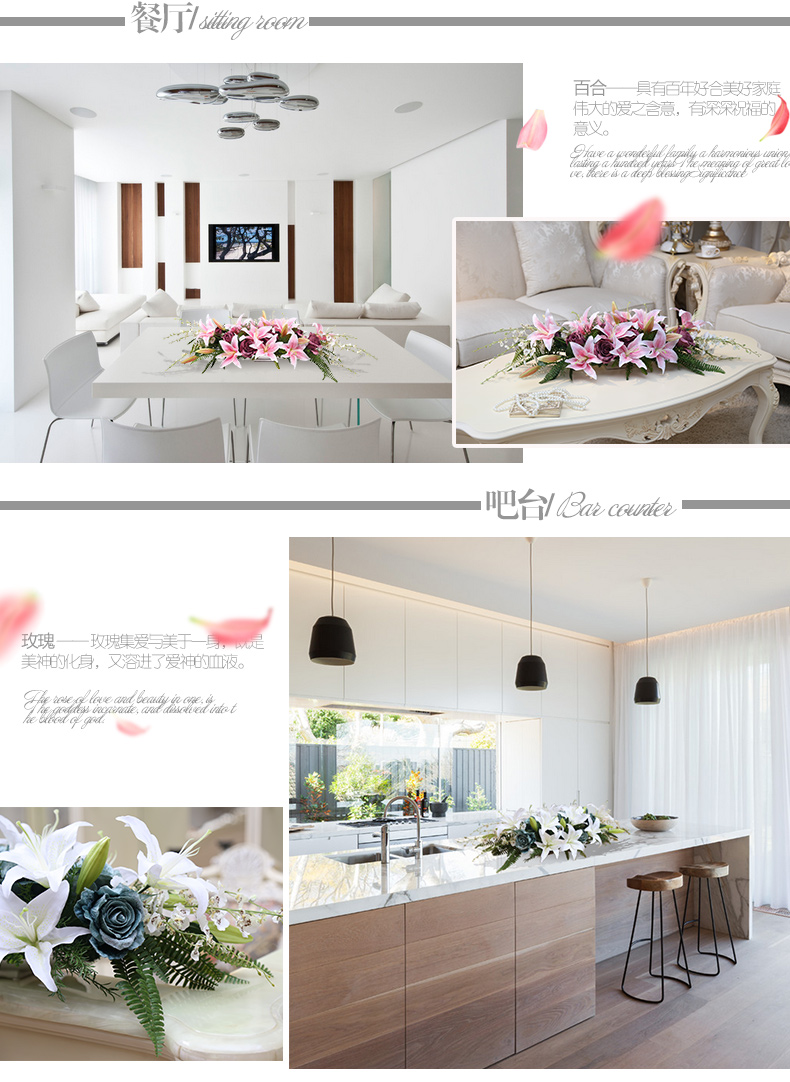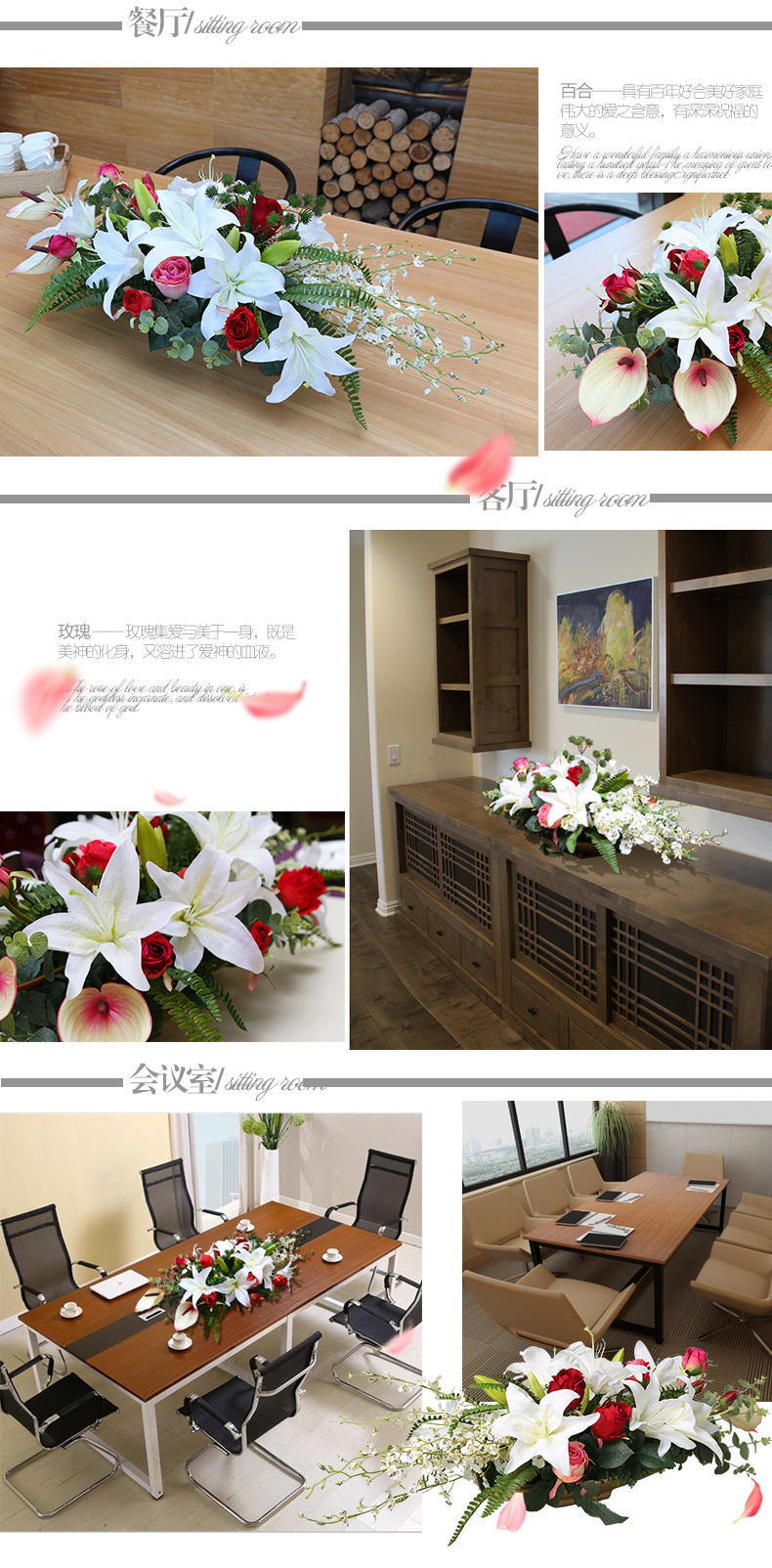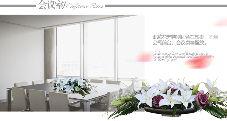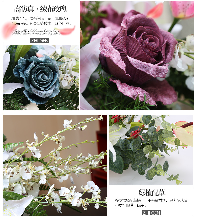 商品名称:国产 知根 高仿真花套装 商务会议桌花台花 餐桌花艺百合玫瑰花套装
