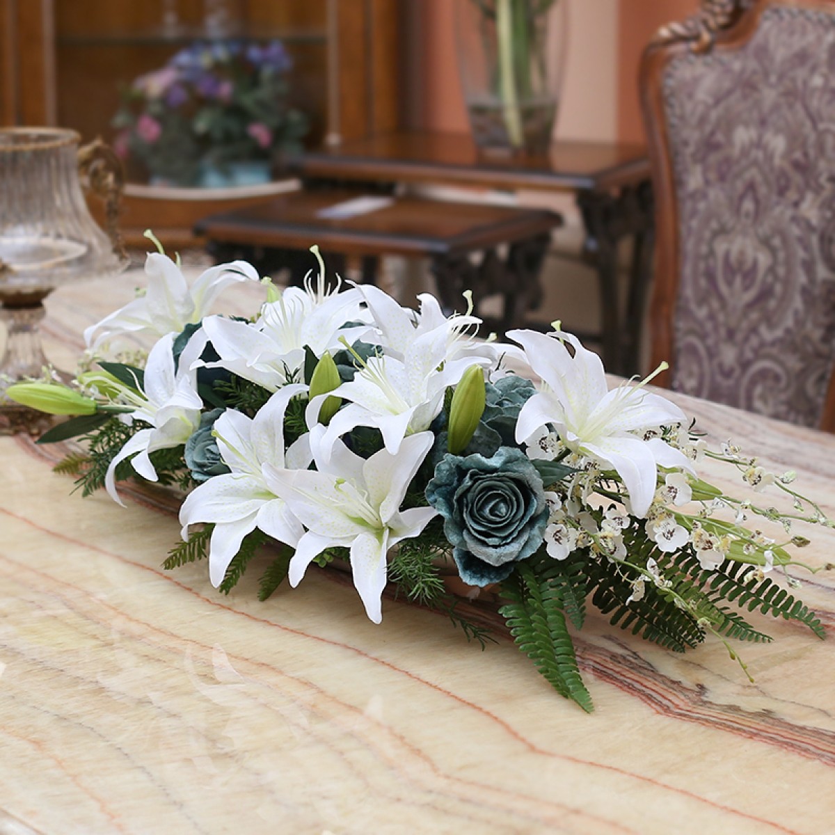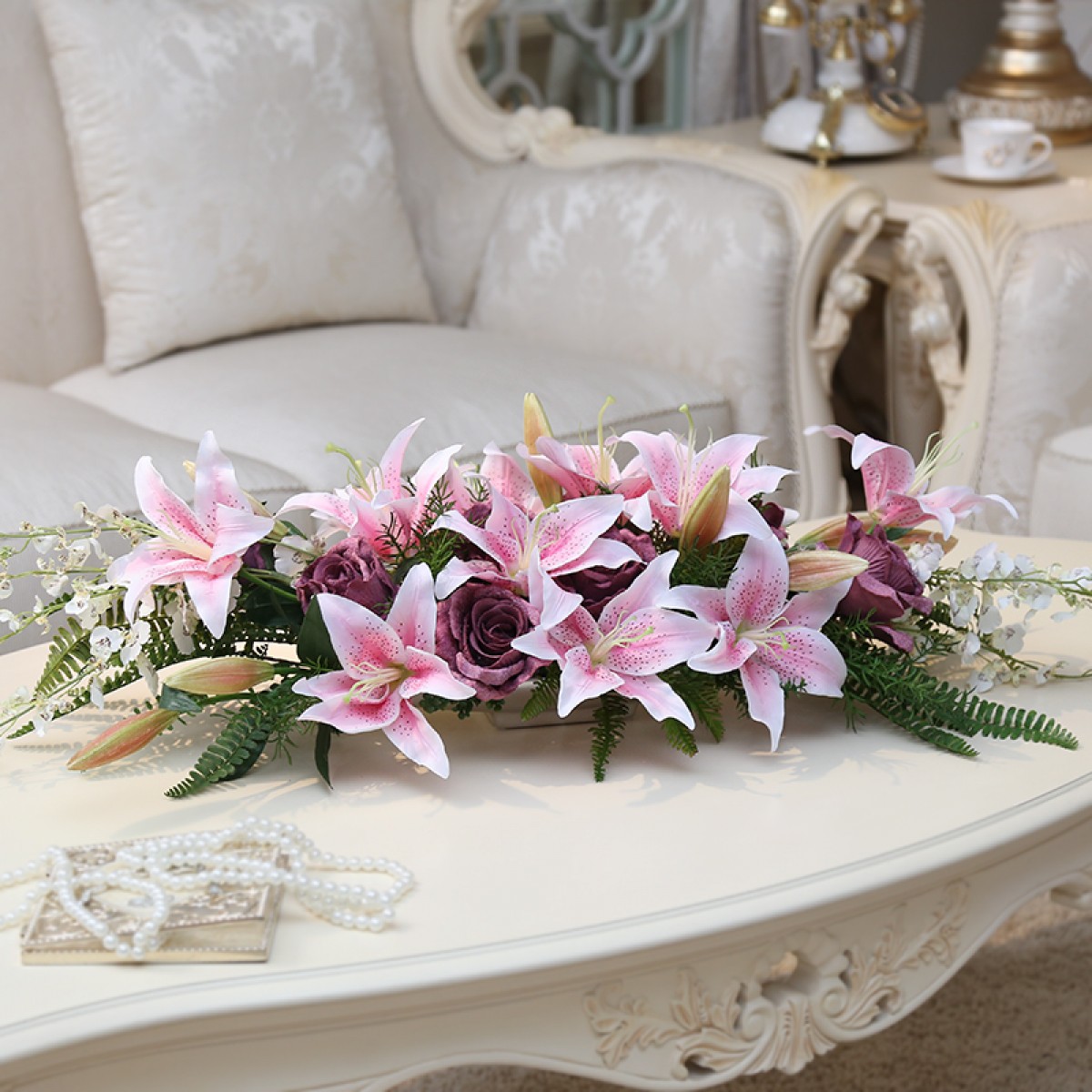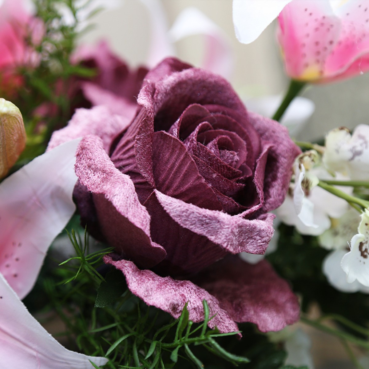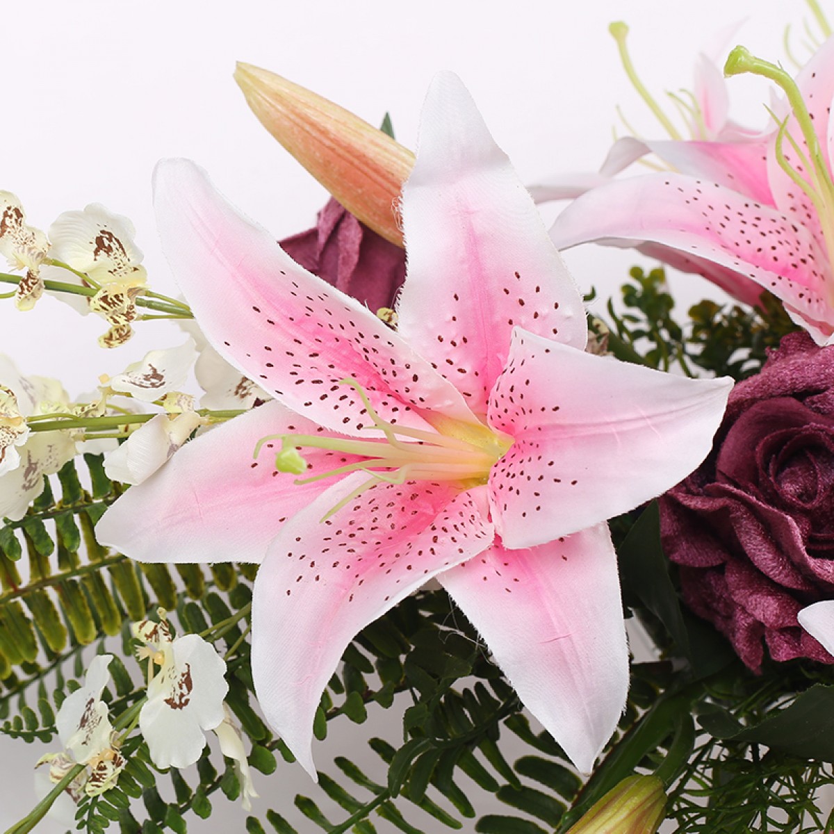 商品名称:国产 知根 高仿真花套装 商务会议桌花台花 餐桌花艺百合玫瑰花套装