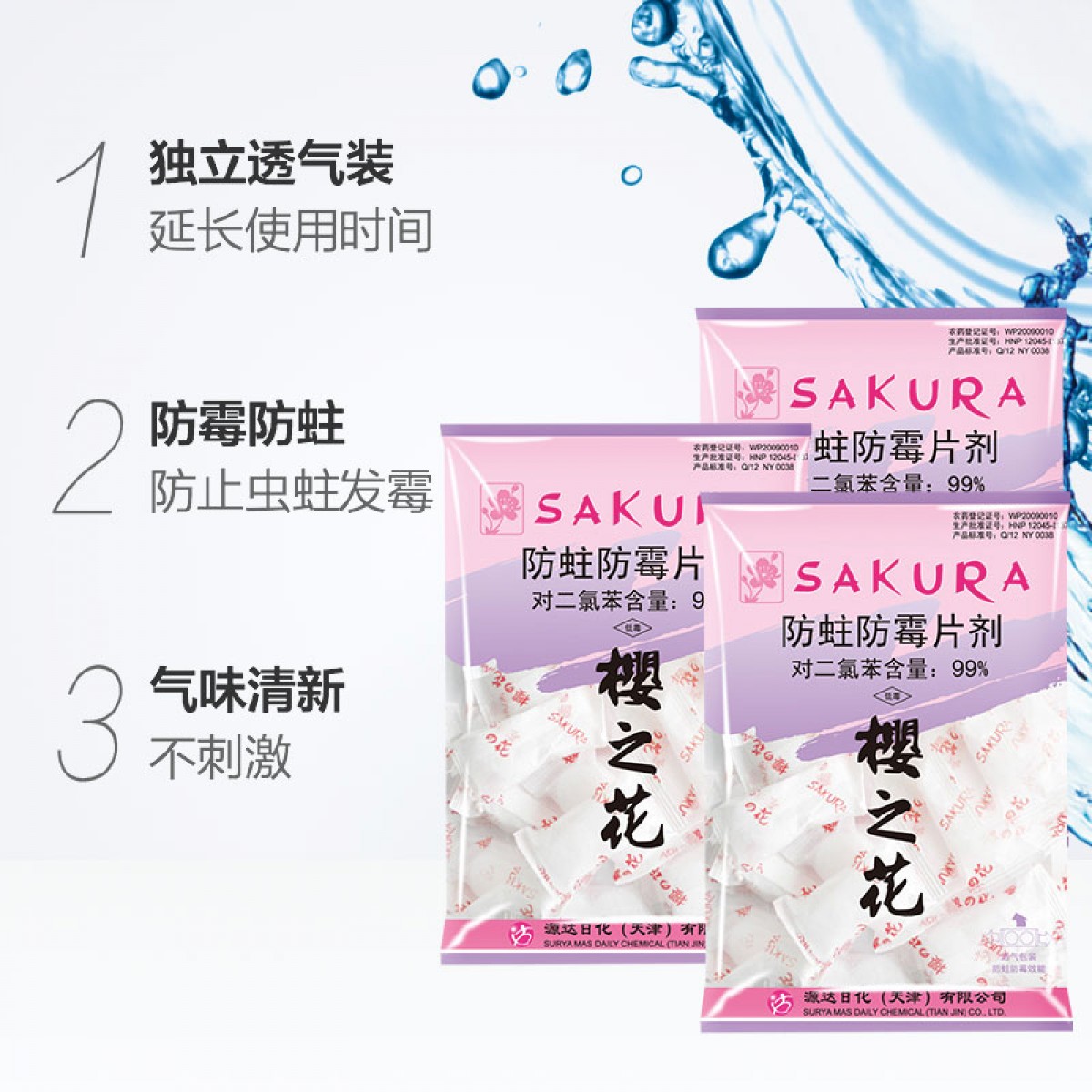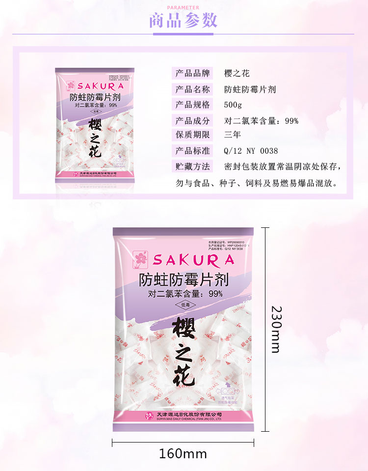 商品名称:樱之花 防蛀防霉片剂500g*3袋衣柜衣橱防蛀虫驱虫 樟脑丸