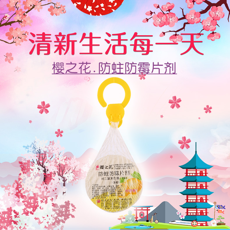 商品名称:樱之花 樟脑丸防霉片剂家用可挂式防潮衣柜防虫防蛀去味芳香樟脑球