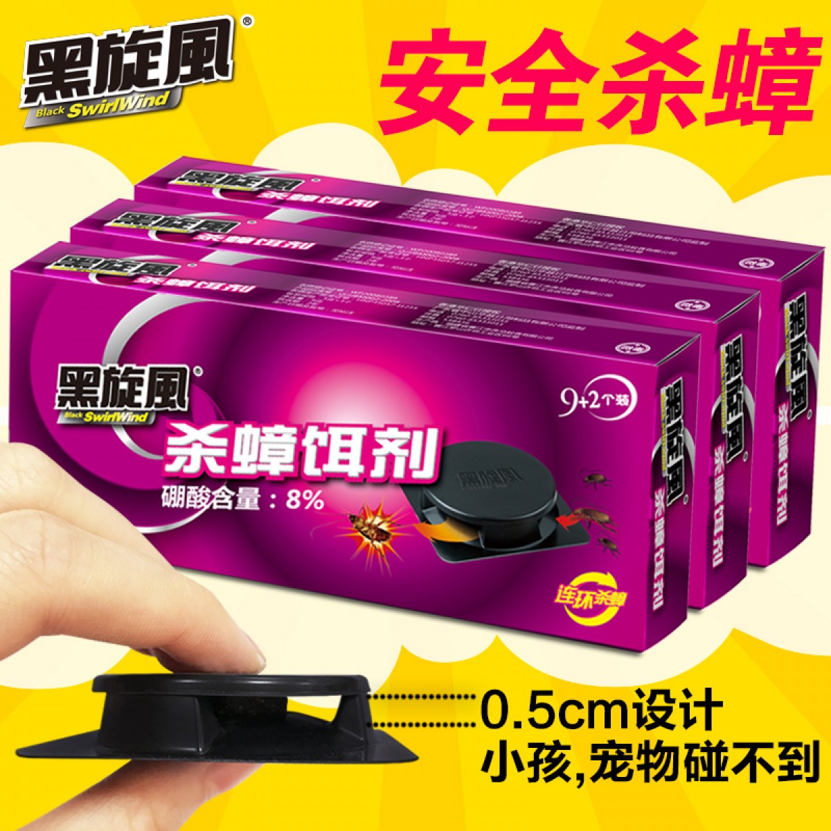 商品名称:黑旋风 蟑螂药家用灭除杀蟑胶饵蟑螂屋无毒一窝端贴3盒神器