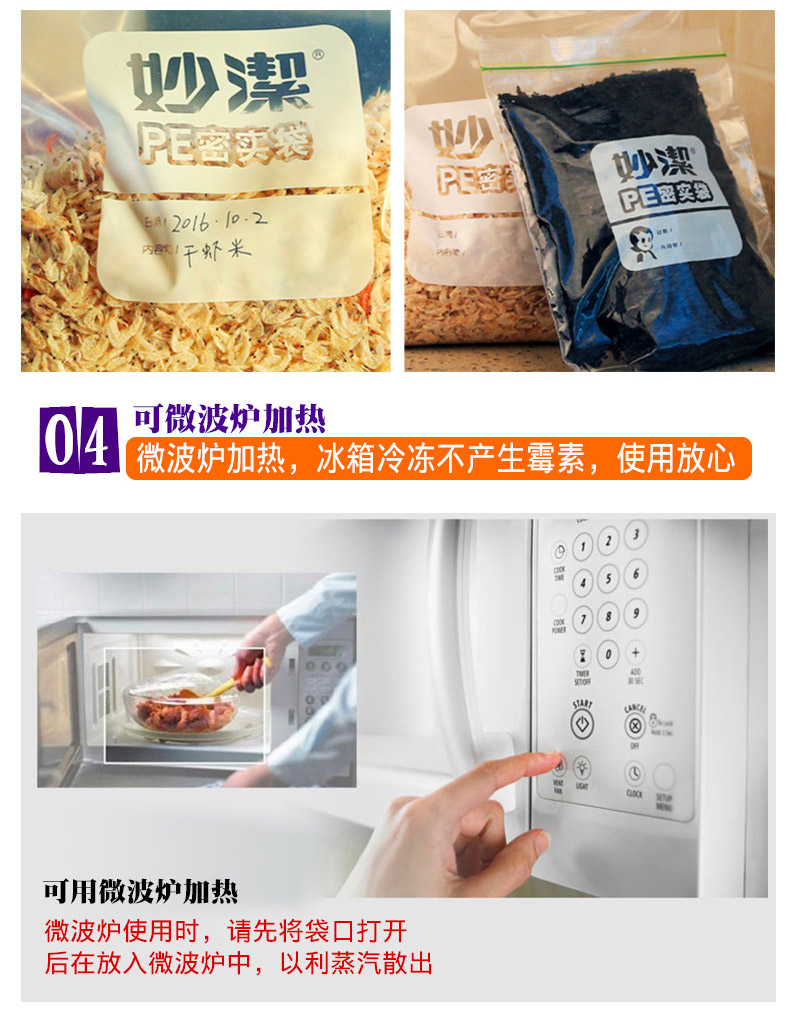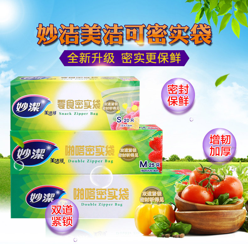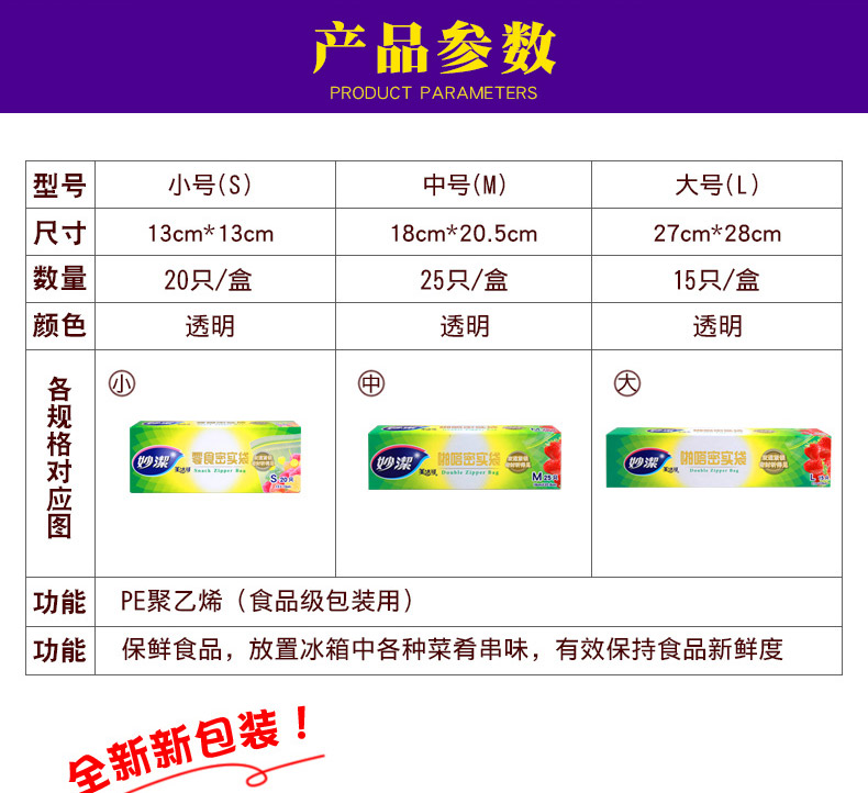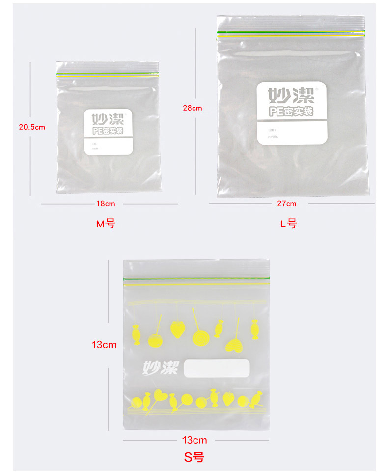 商品名称:妙洁 pe密实袋自封袋家用密封袋双封条食品封口袋小保鲜袋透明加厚