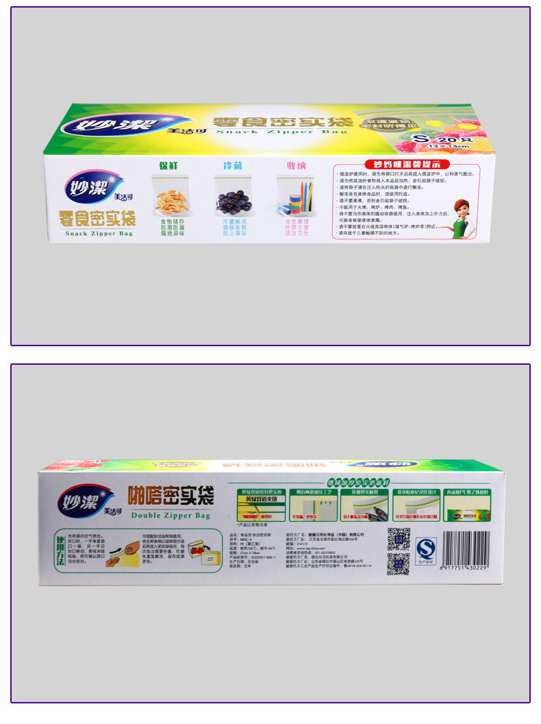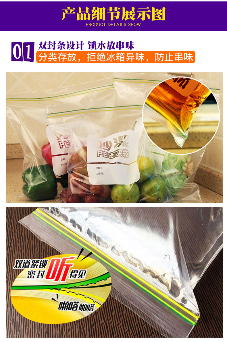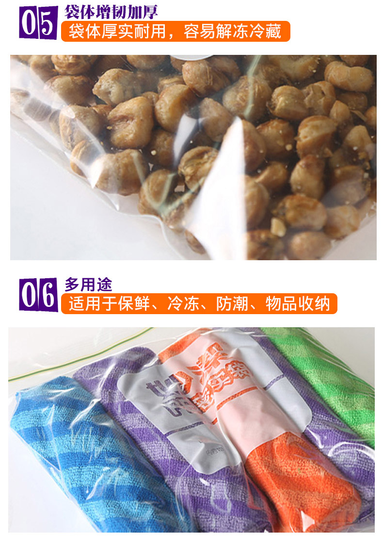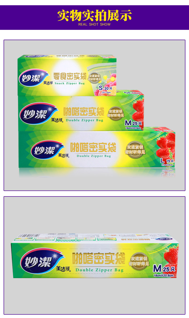 商品名称:妙洁 pe密实袋自封袋家用密封袋双封条食品封口袋小保鲜袋透明加厚
