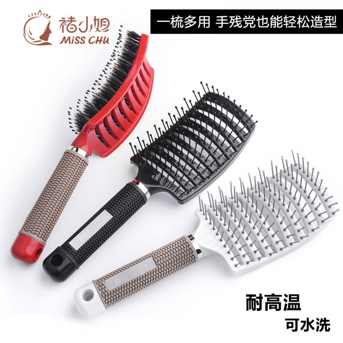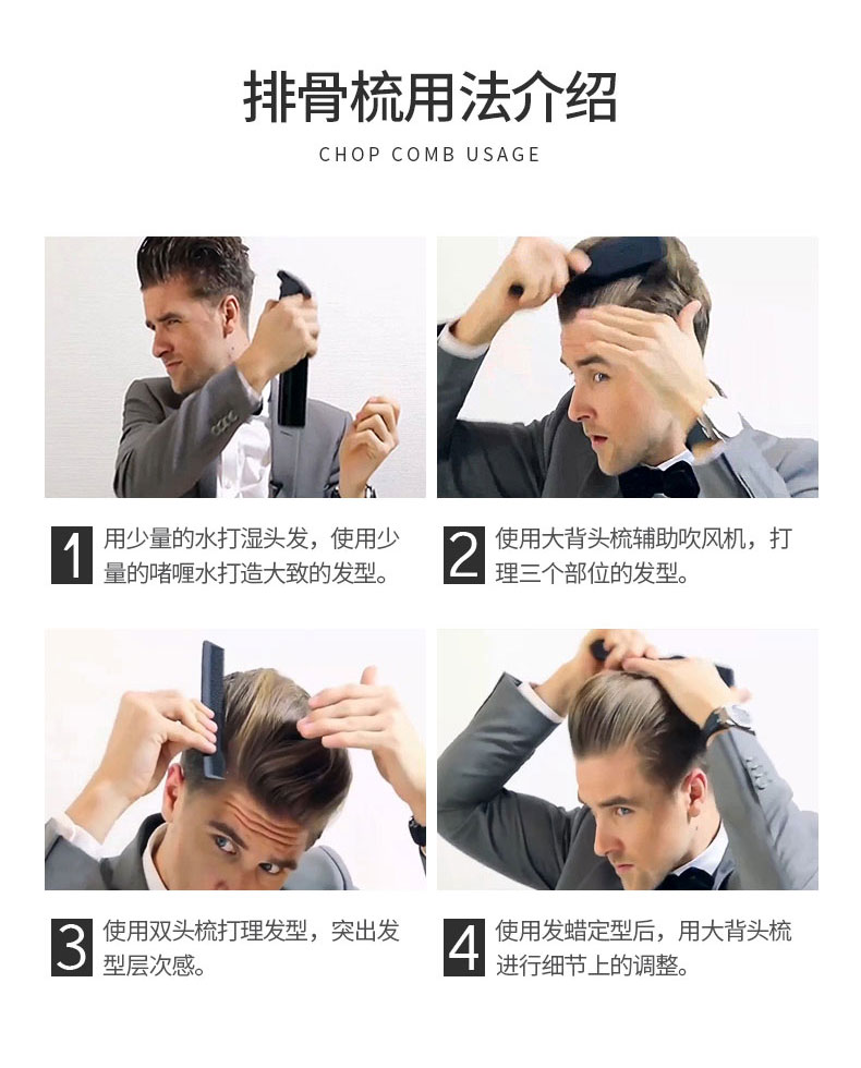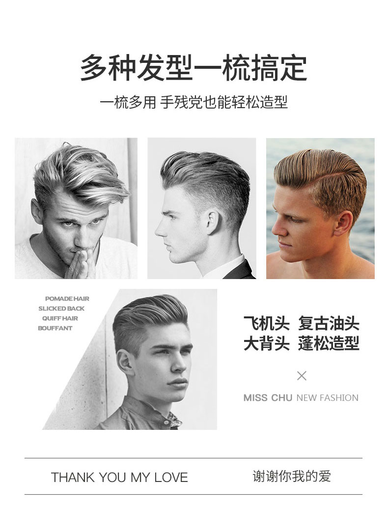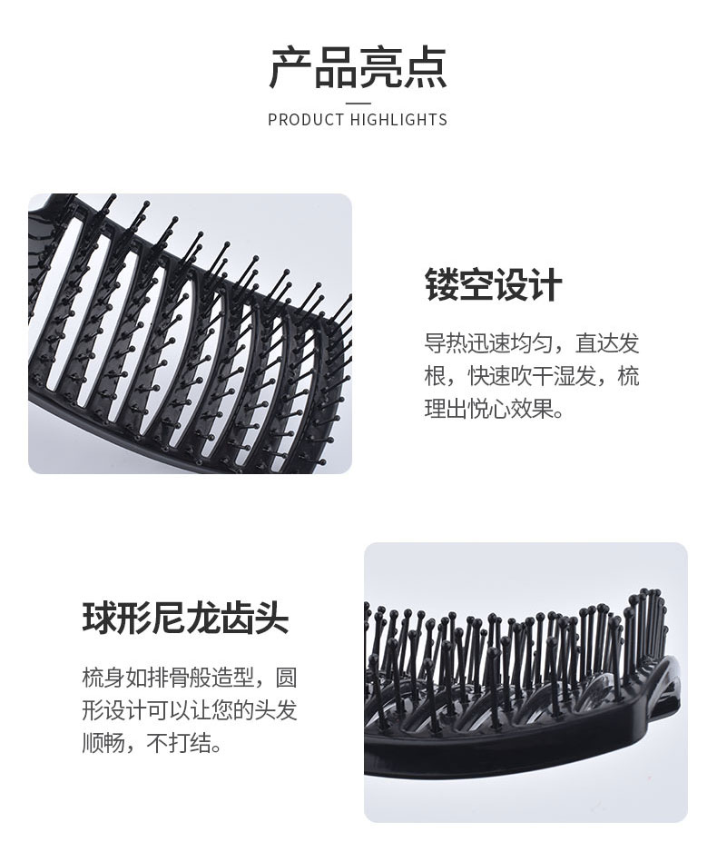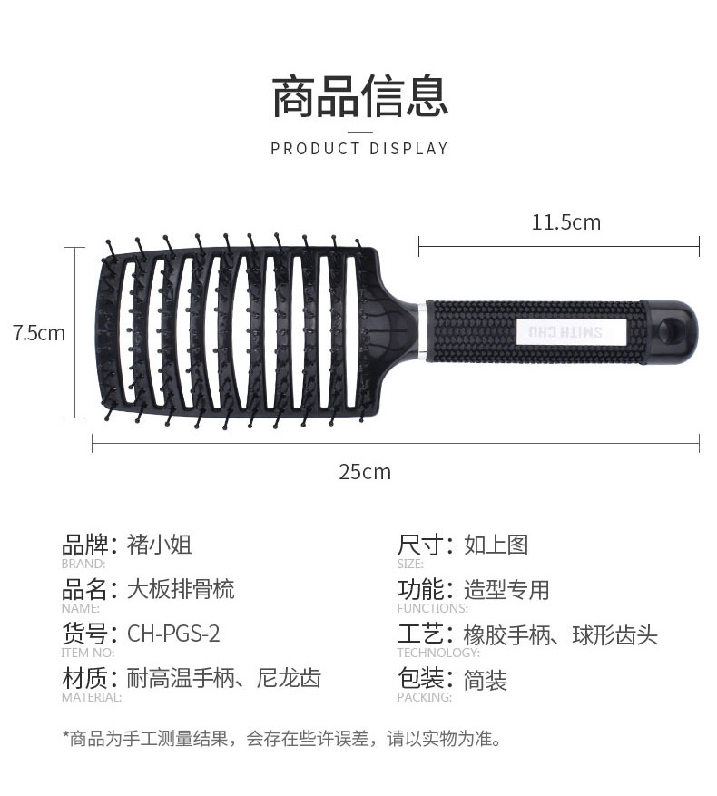 商品名称:褚小姐 推荐梳子男弧形大弯梳大背头排骨梳蓬松造型卷发梳女家用