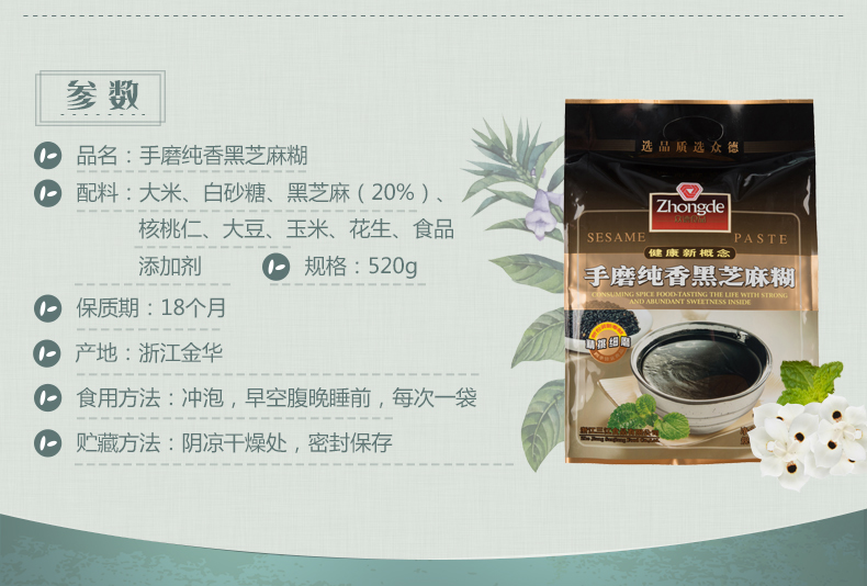 商品名称:国产 众德现磨手磨纯香黑芝麻糊520g谷物芝麻粉营养早餐