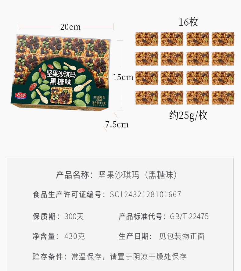 商品名称:国产 黑糖味每日坚果沙琪玛软糯葡萄干430g*4盒 整箱手工零食批发
