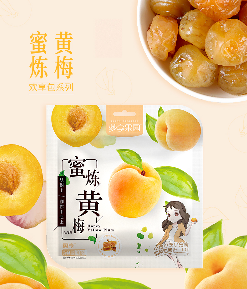商品名称:国产 盈享梦享果园方形欢享包九制原话梅单袋多种类酸甜梅子果脯零食