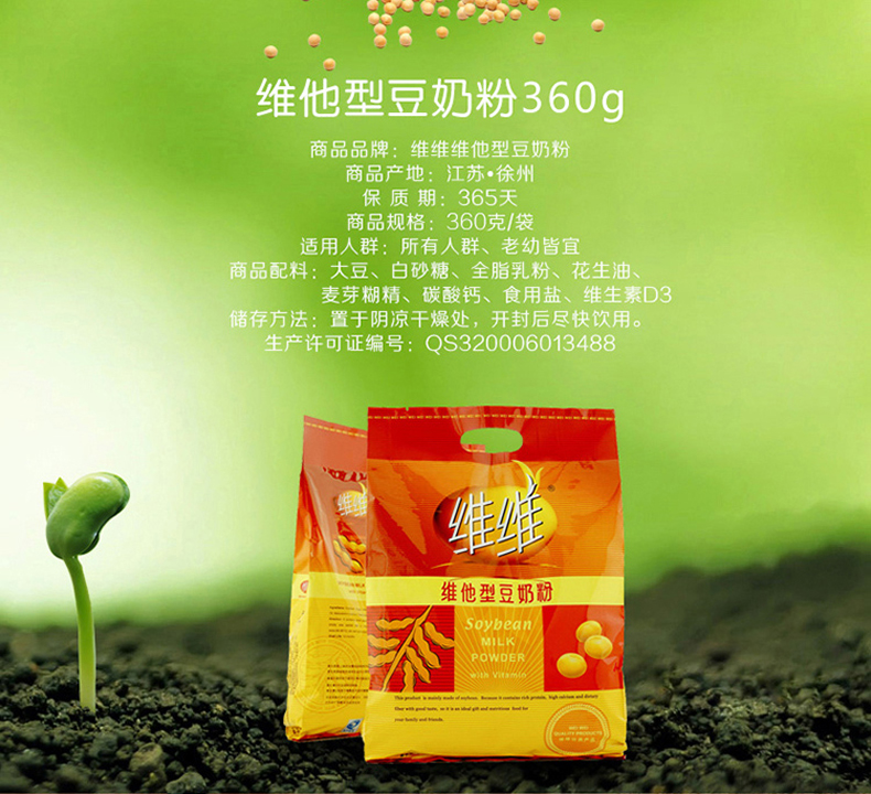 商品名称:维维 维他型豆奶粉 360g 内含小包营养早餐欢乐开怀