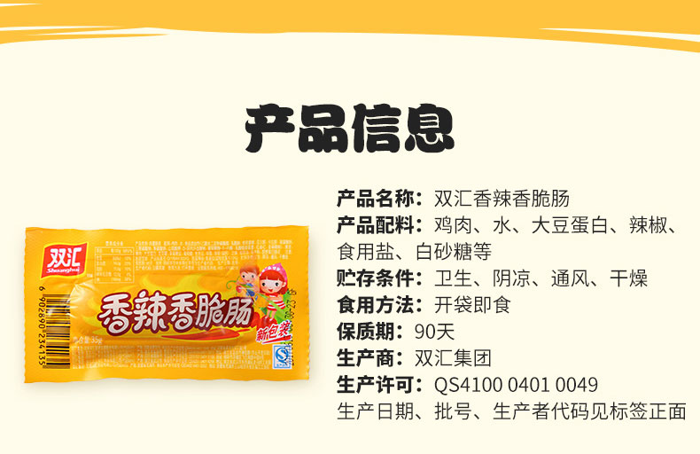 商品名称:双汇 香辣香脆肠35g*10个 即食香肠火腿肠 经典休闲零食