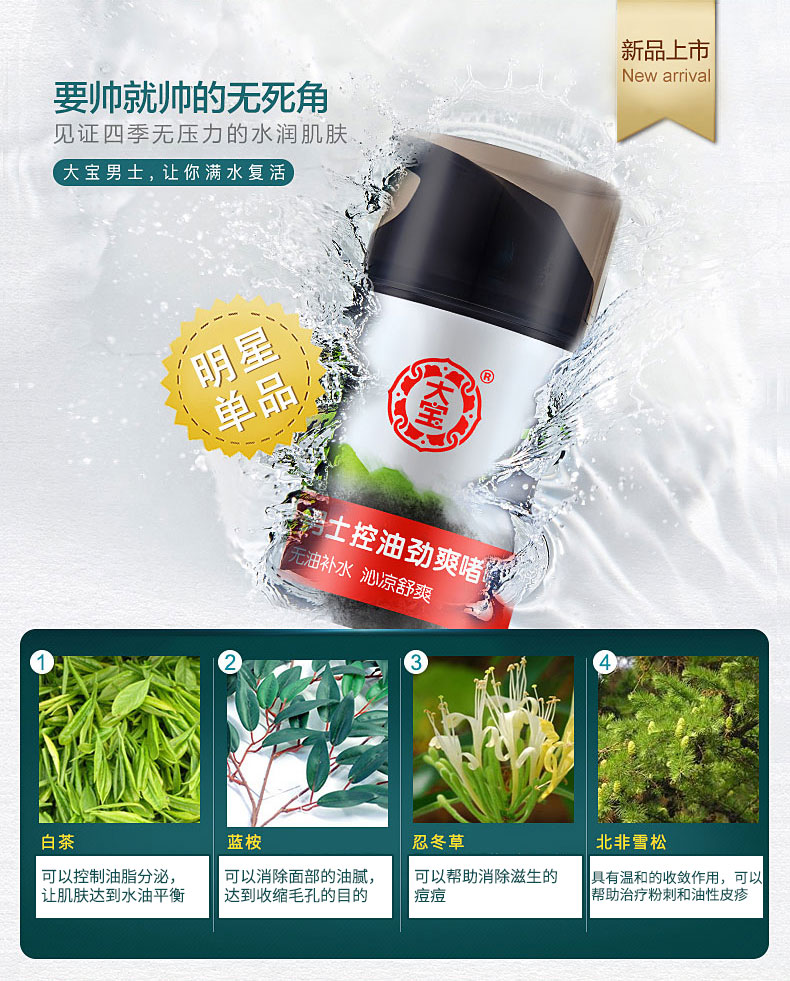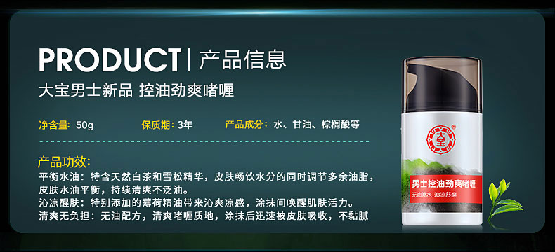 商品名称:大宝 男士护肤品冰爽醒肤劲能凝露擦脸油50g