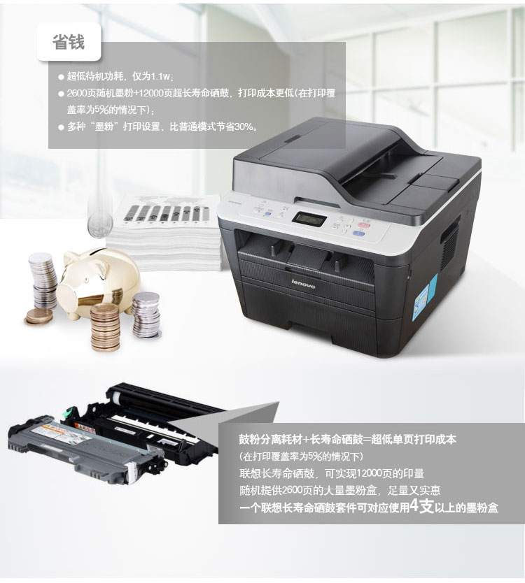 | 其它功能 | 水印打印,手动双面打印、多页合并打印、反转打印、小册子打印、页眉页脚打印、海报打印、自定义纸张打印、省墨打印、墨粉浓度调整 |