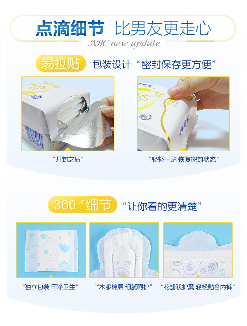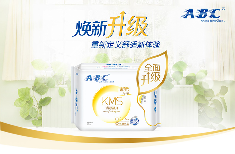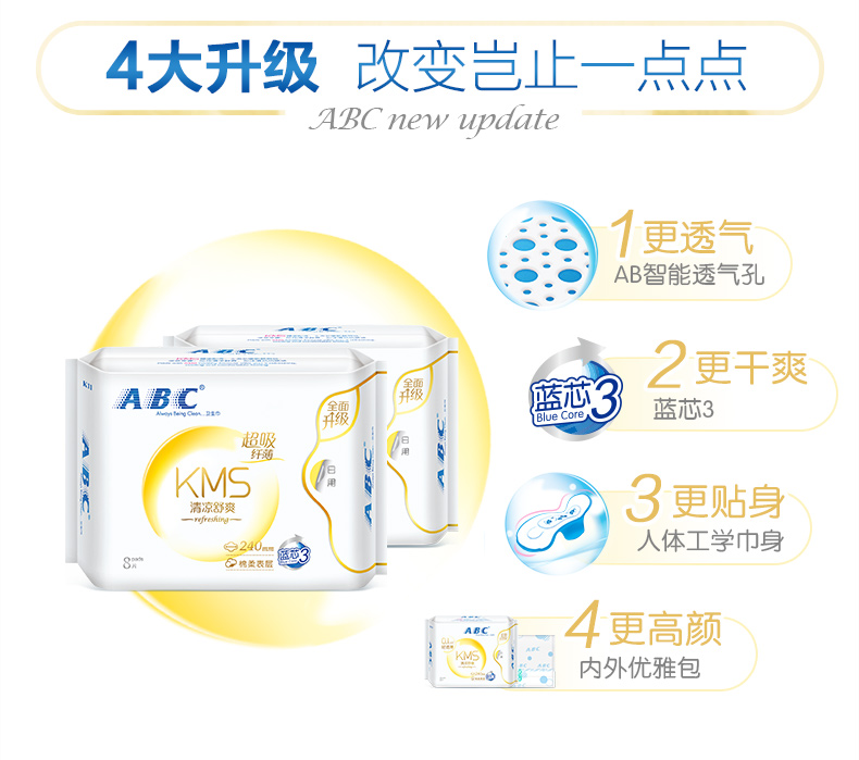 ABC 卫生巾超薄0.1cm亲肤日用姨妈巾套装棉柔240mm*3包装
