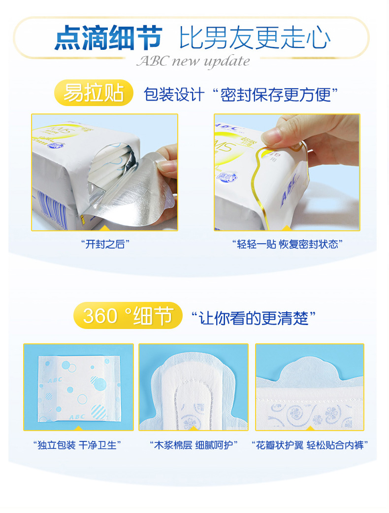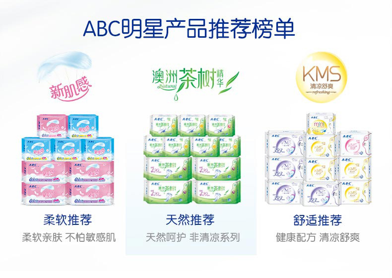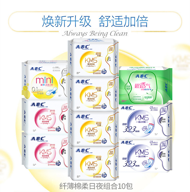 商品名称:abc 卫生巾女整箱批发夜用日用纯棉组合装姨妈巾
