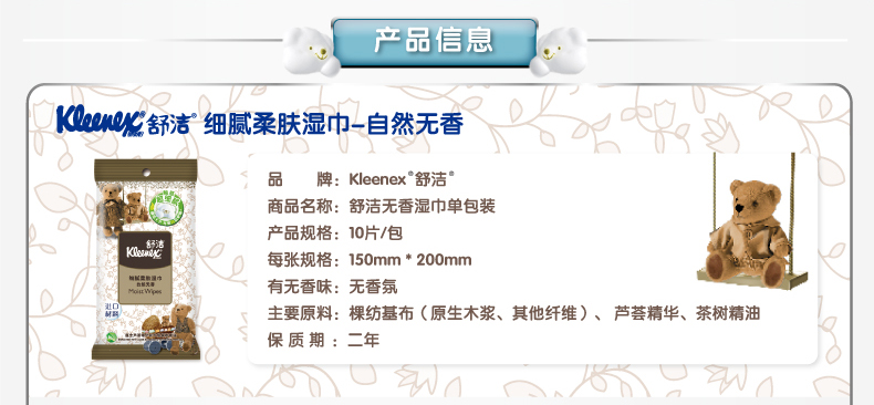 商品名称:舒洁 小熊系列印花无香倍柔亲肤湿巾纸品 10片/包*4包