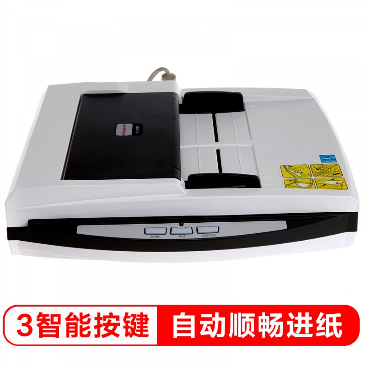 A4彩色双面直通道自动馈纸+平板双平台扫描仪,直通道走纸的ADF大容量自动进纸器,20ppm/40ipm快速扫描,2400dpi高分辨率,扫描元件双CIS,可自由设置多达9组常用功能。