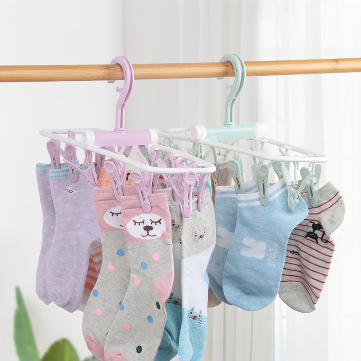 商品名称:国产 阳台多功能防风晾晒衣架女士内衣袜子带塑料12夹子家用便携可折叠