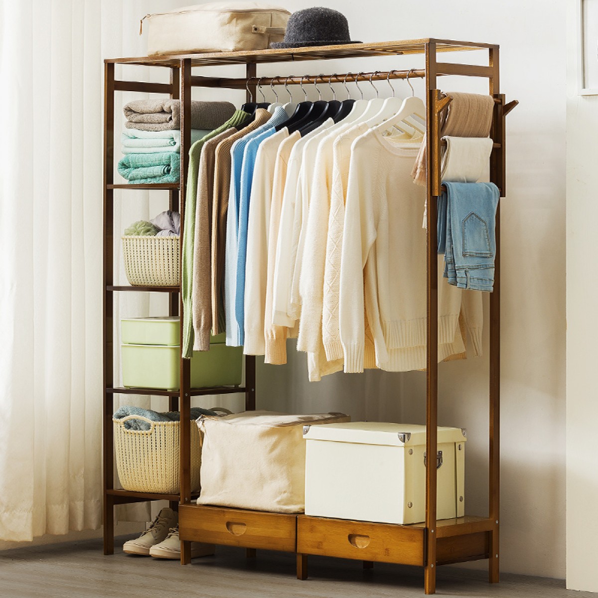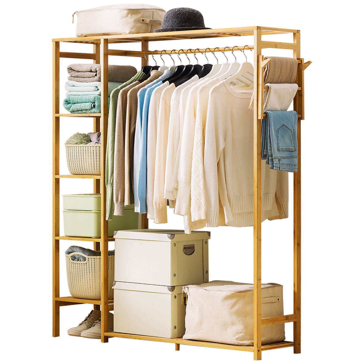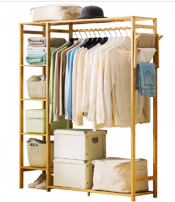 商品名称:木马人 简易衣帽架实木卧室落地挂衣架柜子衣服包置物家用简约现代