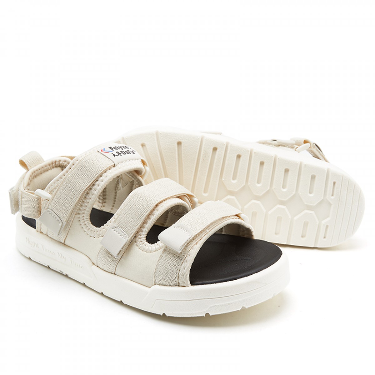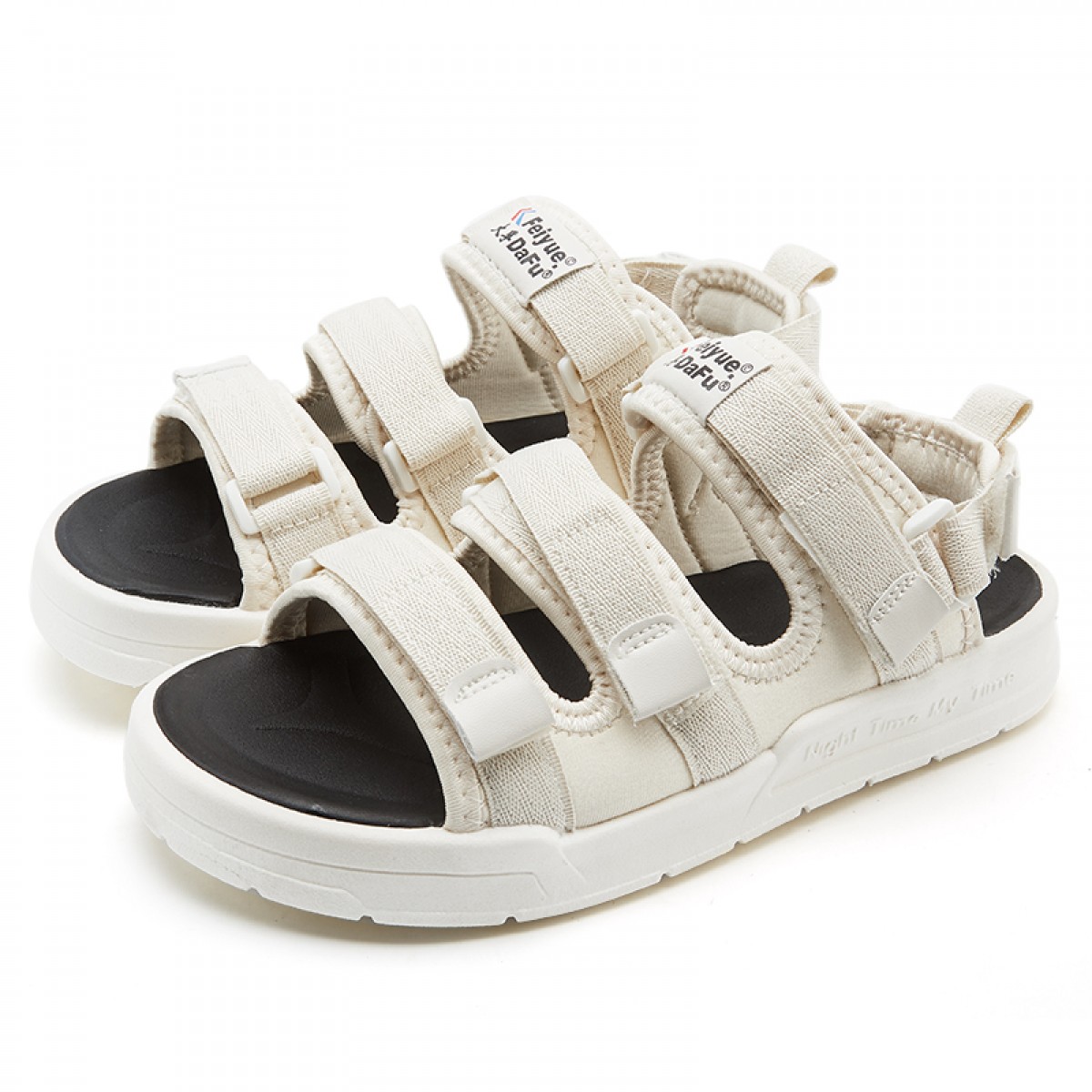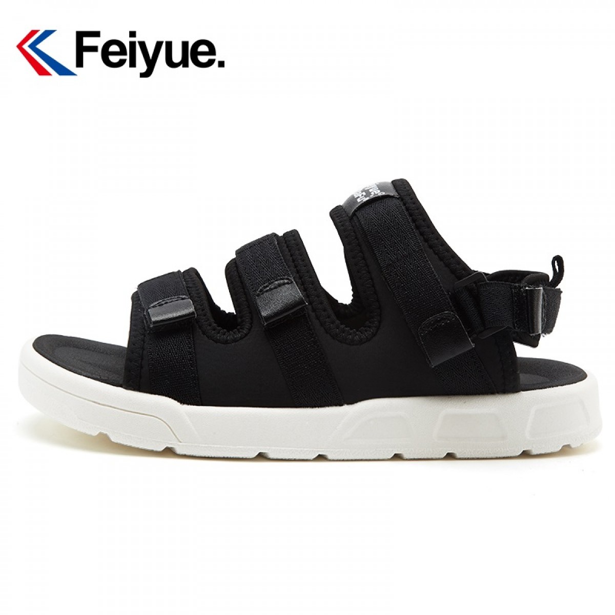 feiyue/飞跃 凉鞋女夏季新款魔术贴百搭沙滩镂空平底鞋厚底休闲鞋