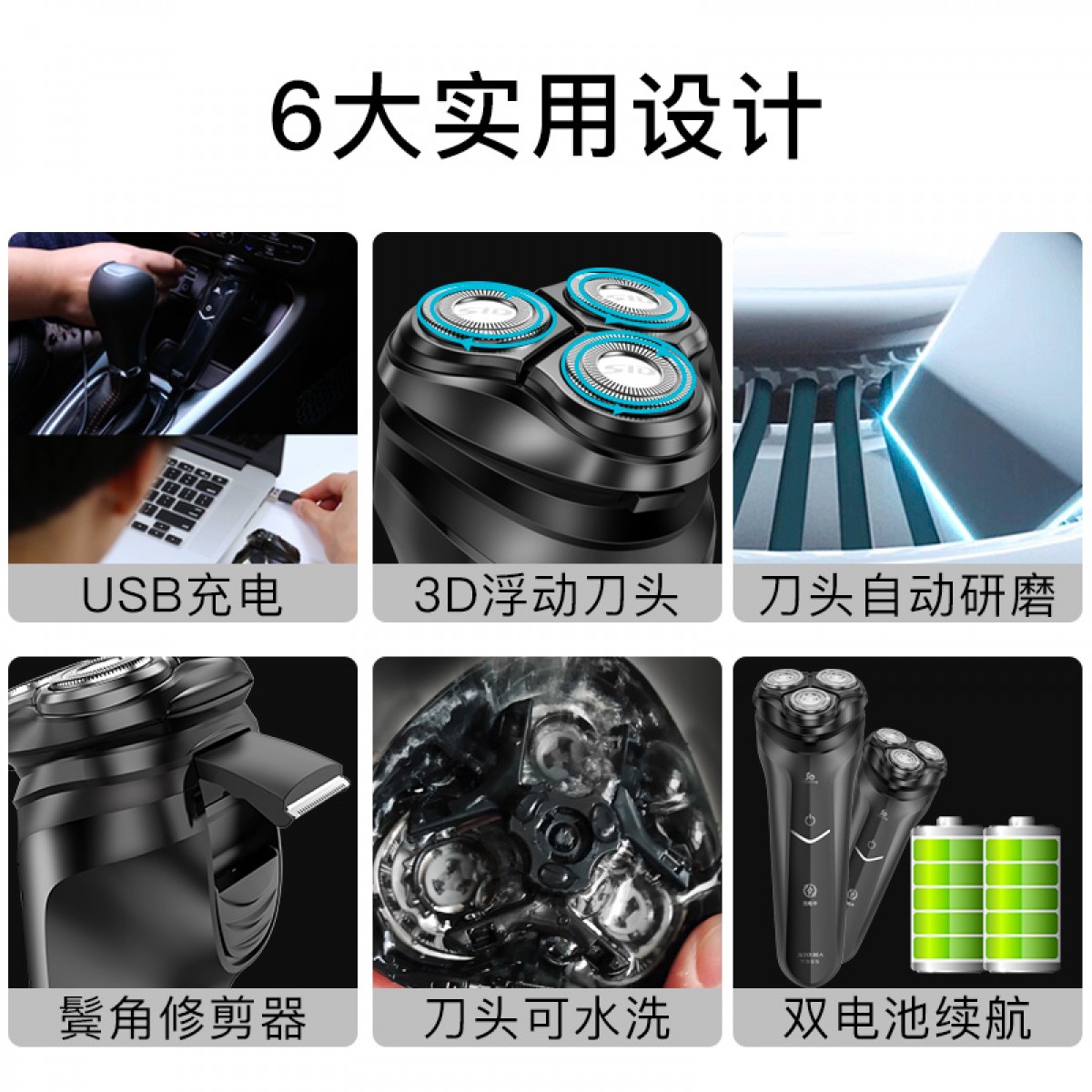 商品名称:超人 剃须刀电动刮胡刀男士充电式智能水洗三头车载官方胡须刀