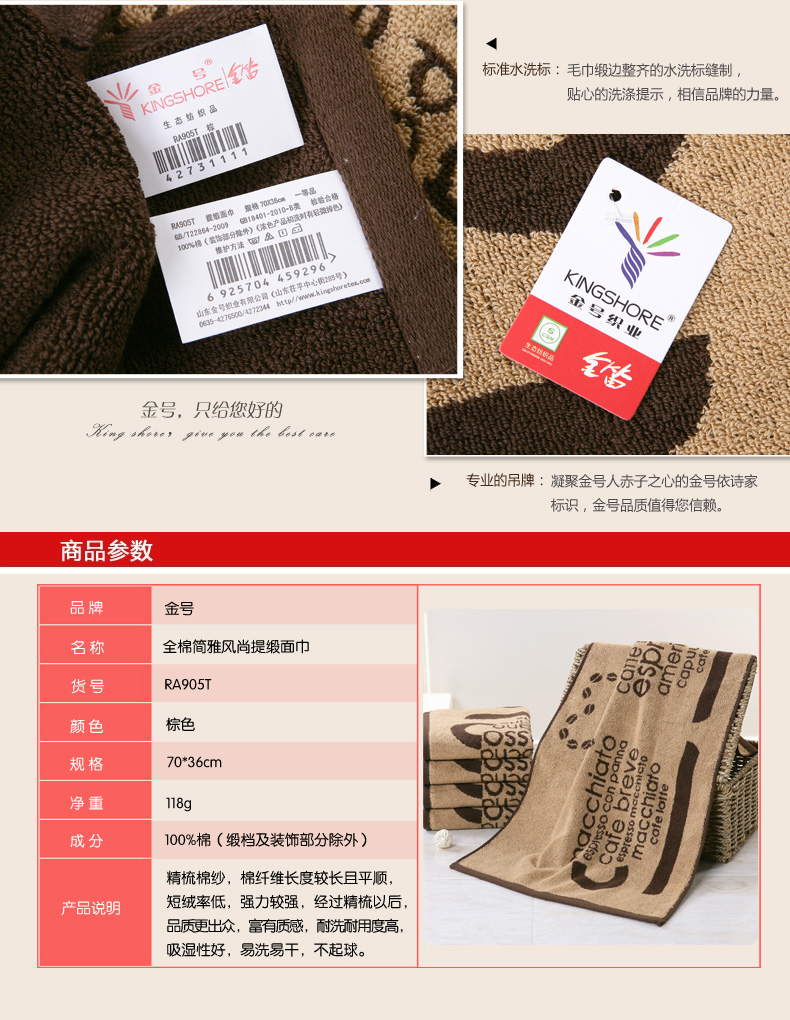 商品名称:金号 纯棉毛巾 加厚加大