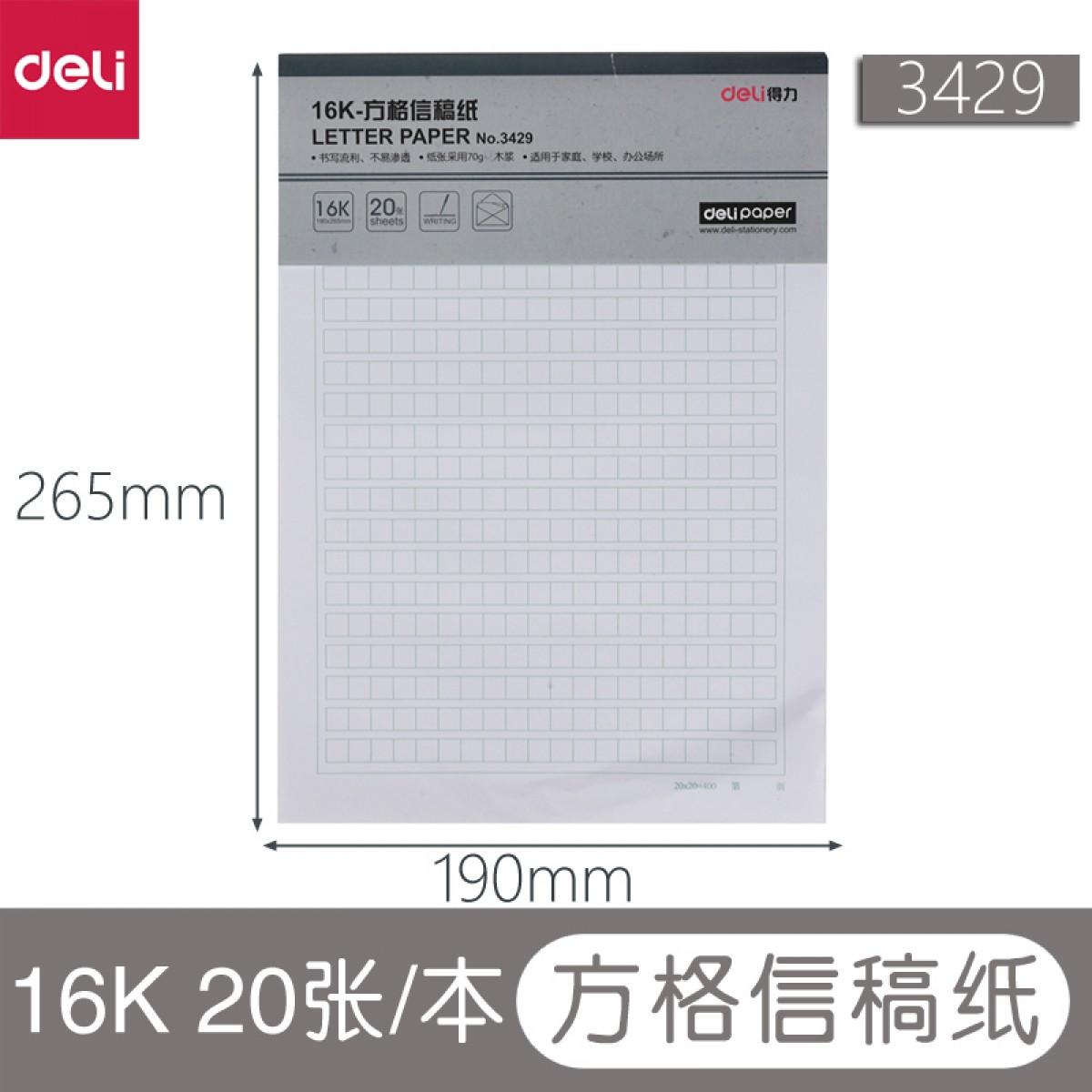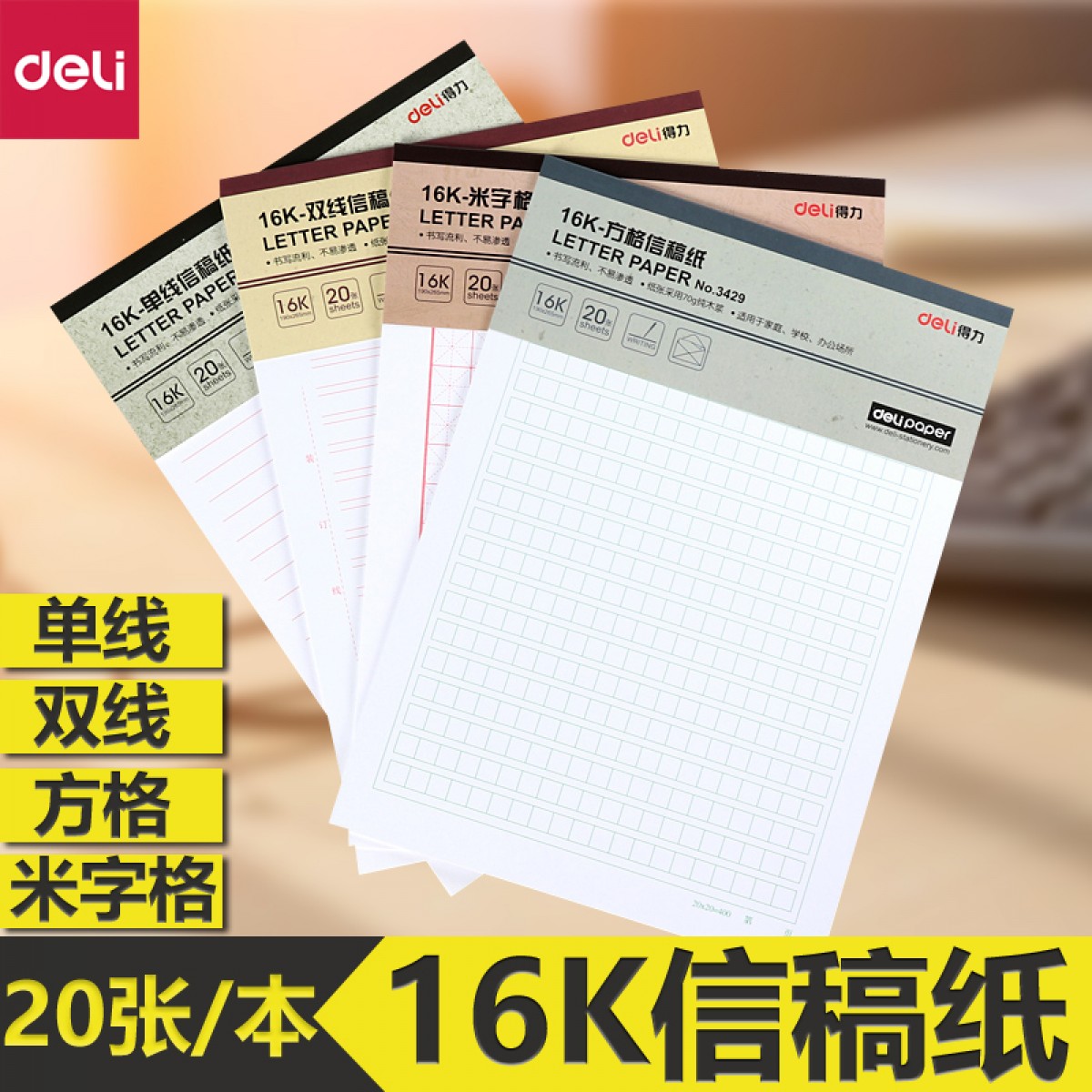 商品名称:得力信纸 单线 双线 方格 米字格 信稿纸