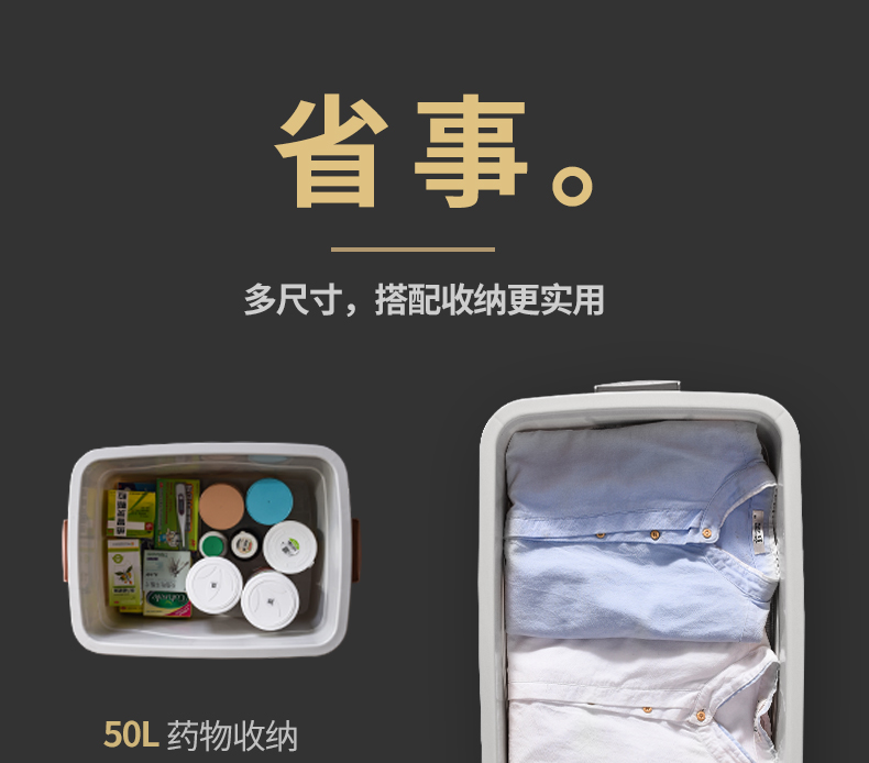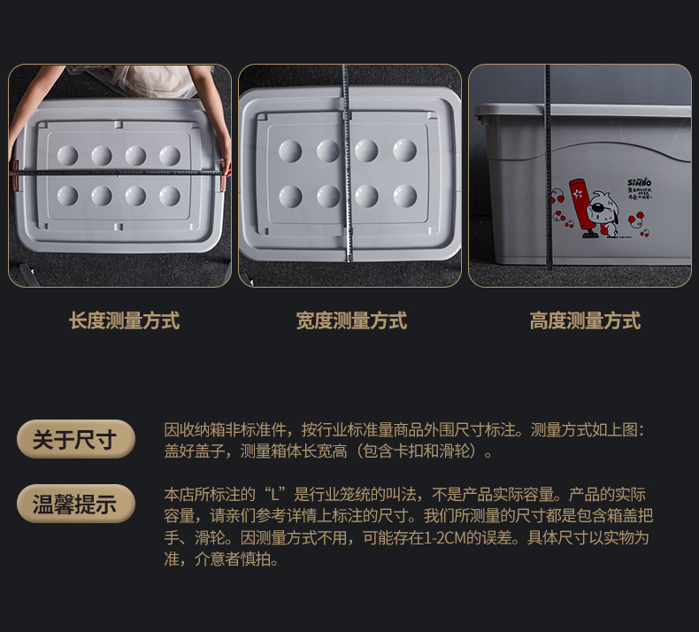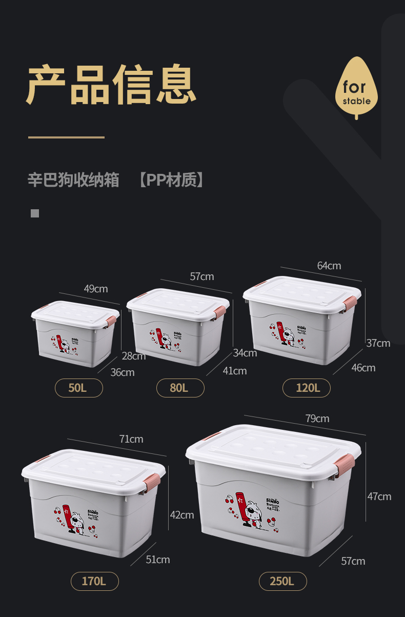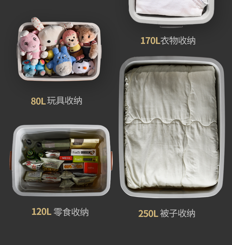 规格:50L小号【适用:书本,零食】长49宽36高28cm 中号80L【适用:玩具,杂物】长57宽41高34cm 120L大号【适用:春秋装,被子】长64宽46高37cm 170特大号【适用:羽绒服,棉被】长71宽51高42cm 250超大号【适用:羽绒服,棉被】长79宽57高47cm 套装推荐80L+120L【省12元!】 套装推荐120L+170L【省18元!】 套装推荐170L+250L【省20元!】 套装推荐80L+120L+170L【省26元!】 套装推荐120L+170L+170L【省36元!】 套装推荐120L+170L+250L【省46元!】