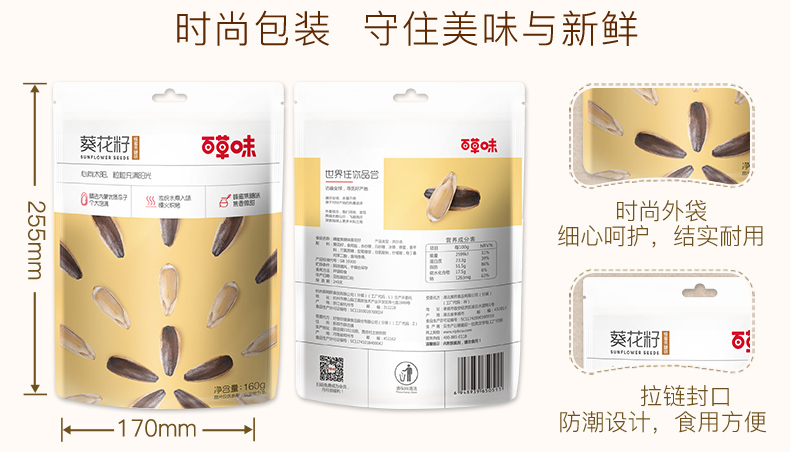 商品名称:百草味 蜂蜜焦糖葵瓜子160gX3
