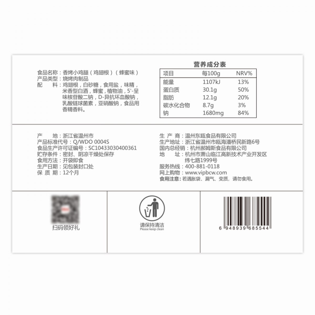 商品名称:百草味 香烤小鸡腿蜂蜜味134g