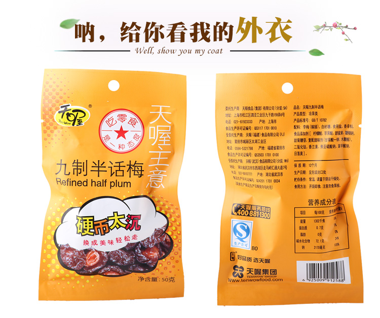 商品名称:天喔 天喔主意 九制半话梅 50g