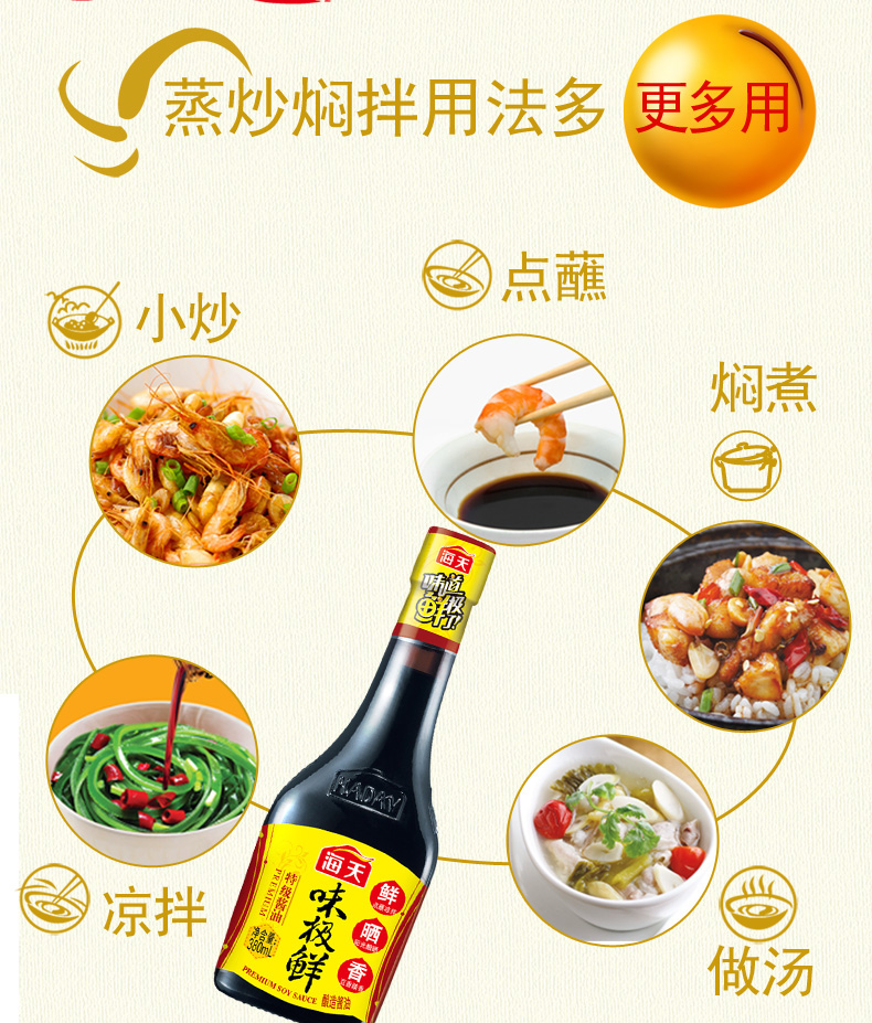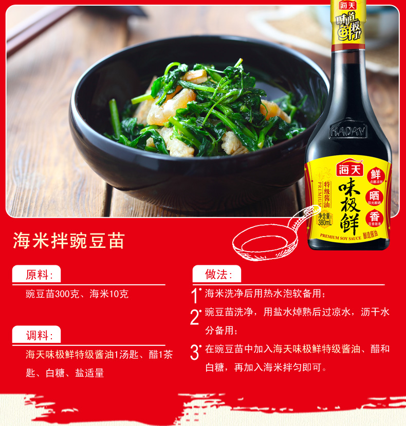 商品名称:海天 味极鲜特级生抽380ml 蒸鱼豉油 炒菜凉拌火锅蘸料调料