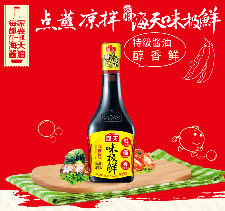 海天 味极鲜特级生抽380ml 蒸鱼豉油 炒菜凉拌火锅蘸料调料