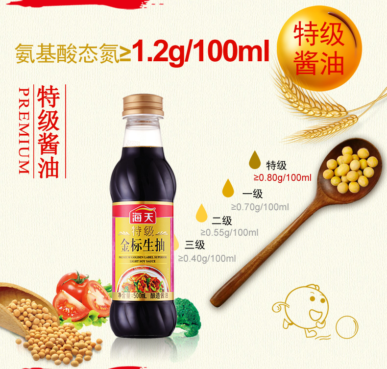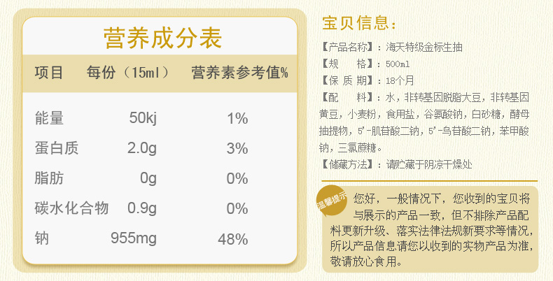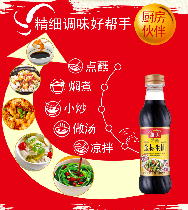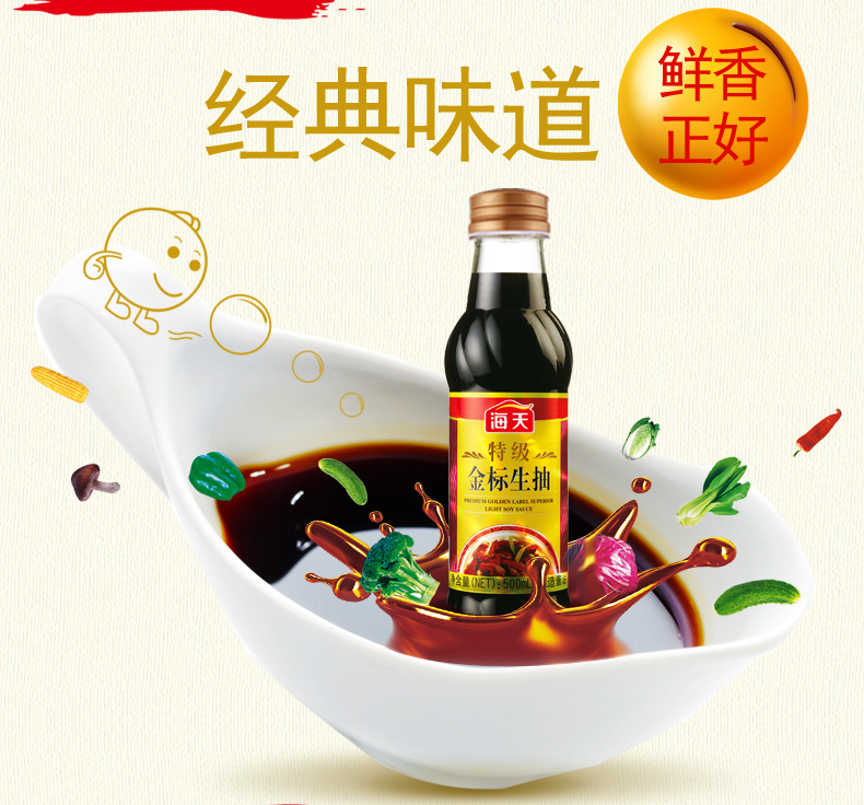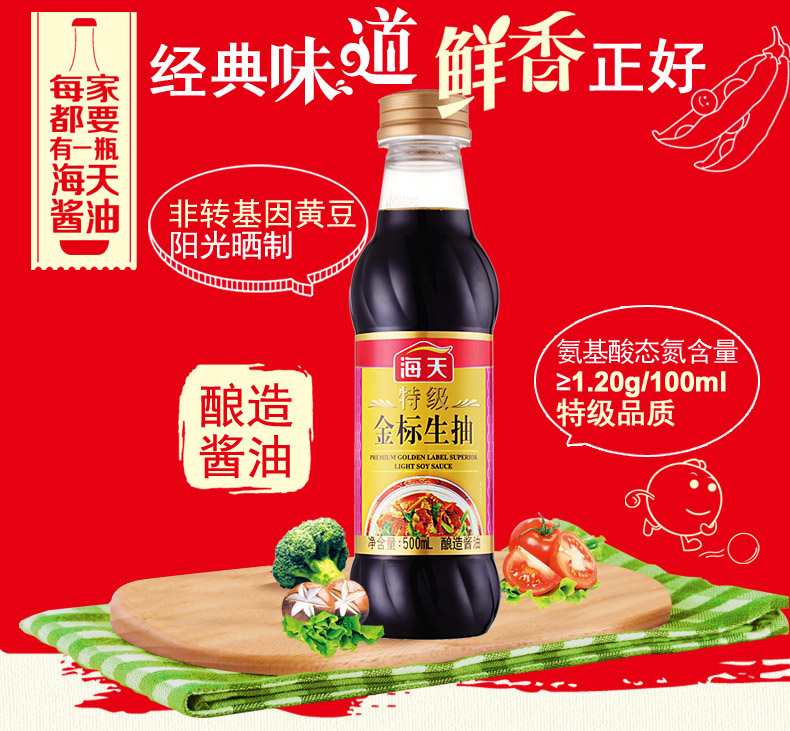 商品名称:海天 特级金标生抽500ml*1瓶海天酱油特级生抽点蘸凉拌家常调味