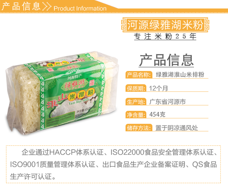 商品名称:绿雅湖 淮山米粉 454g