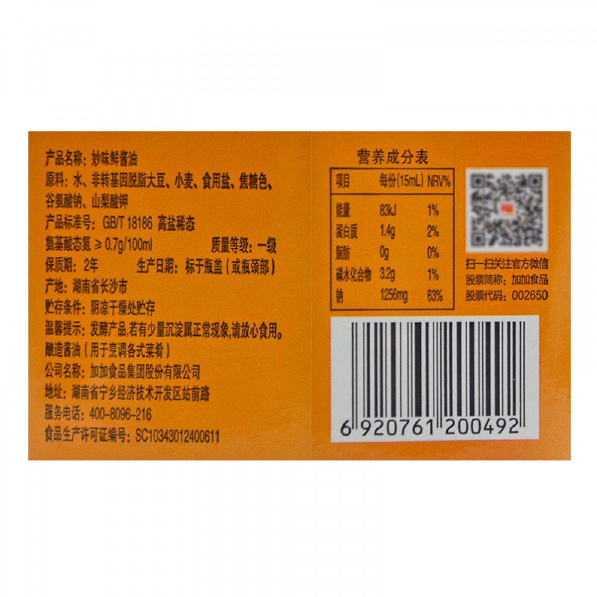 商品名称:加加 妙味鲜380ml