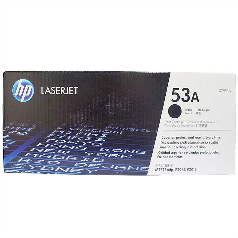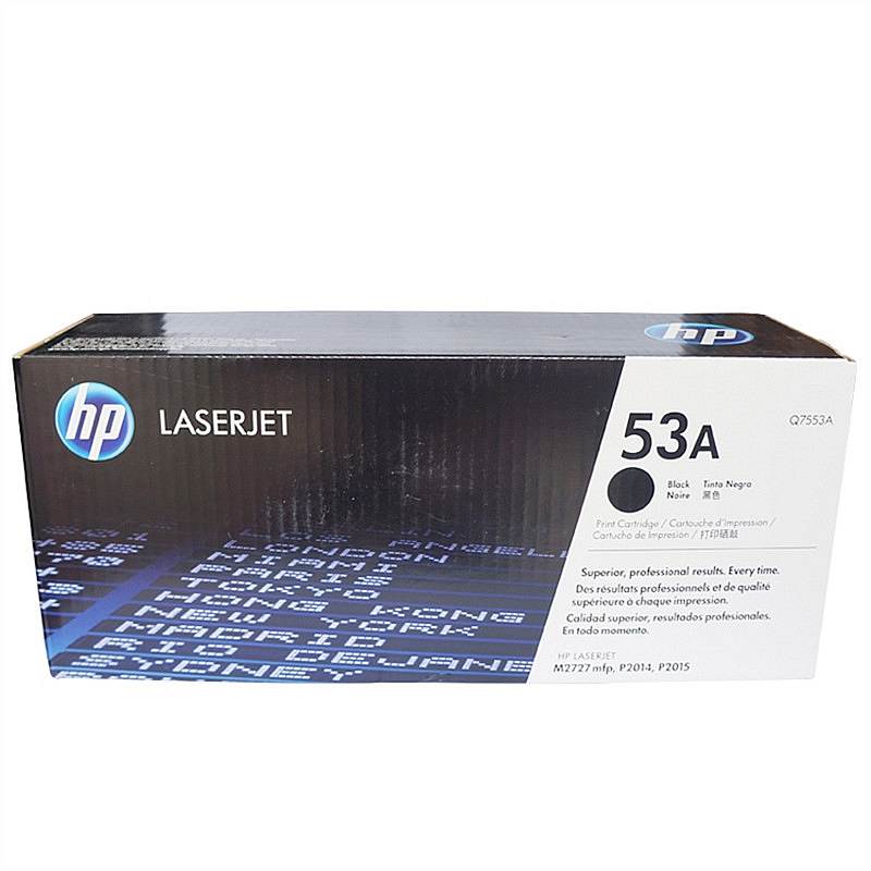 商品名称:★ 惠普/HP 53A(Q7553A) 黑色 硒鼓 (只) 适用机型 cjp2015 toner P2014 laserjet m2727 打印页数 3000