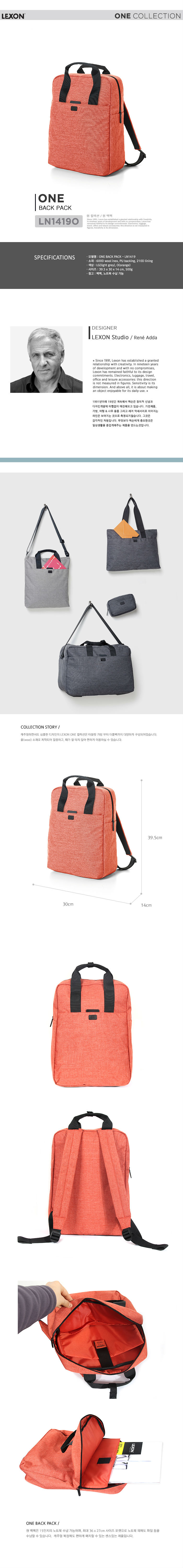 乐上 ONE系列-背包 395×300×140mm 浅灰色 四级防泼水和环保面料-电脑隔层或IPAD隔层-轻便简约-可双肩可手提 LNR1419