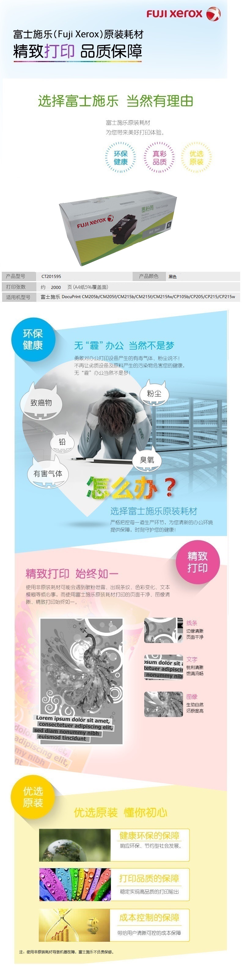 商品名称:富士施乐(Fuji Xerox)CT201595 黑色 粉盒 大容量 适用于CP/CM 105/205/215系列 打印量2000页
