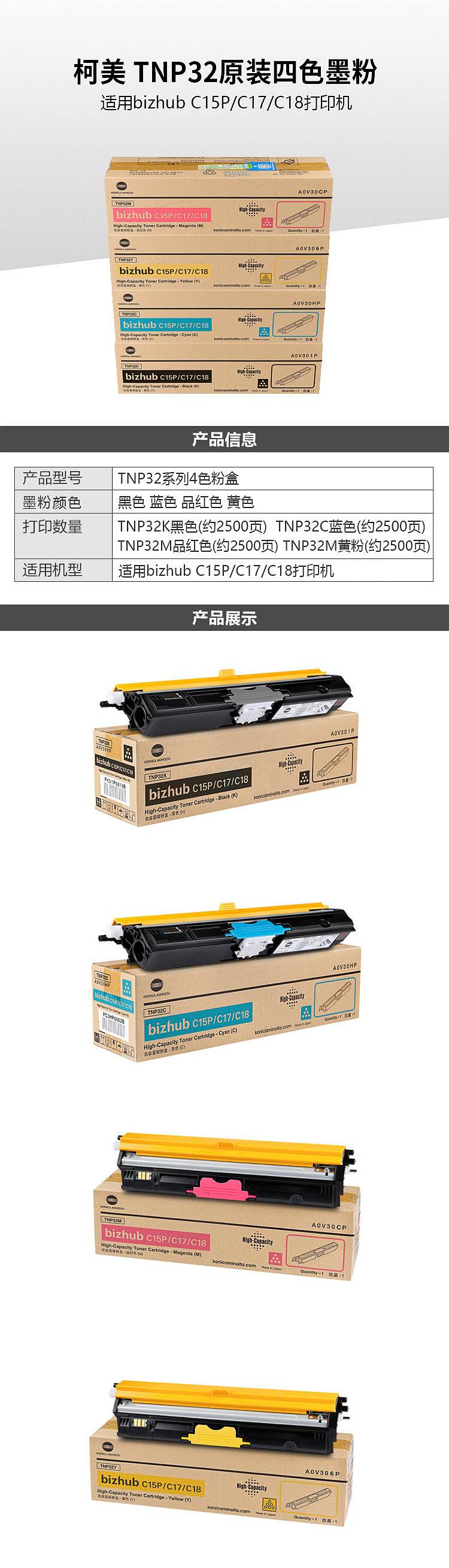 商品名称:柯尼卡美能达/KONICA MINOLTA 复印机碳粉(适用bizhub C15P/C17/C18打印机) 黄色 TNP32Y