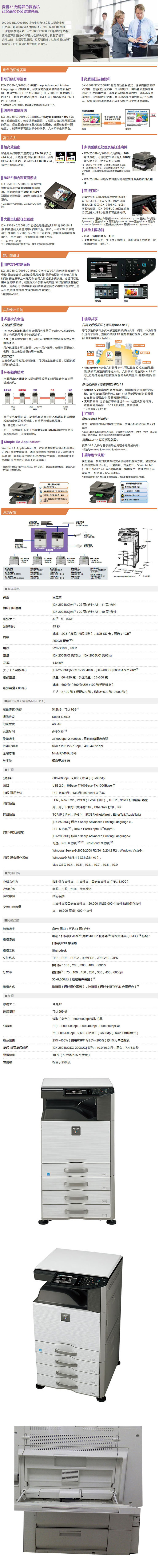 商品名称:夏普/SHARP 彩色数码复合机(网络+双面输稿器 +双纸盒) DX-2508NC
