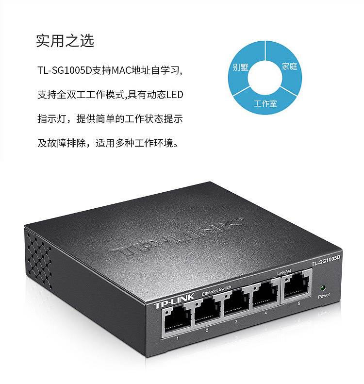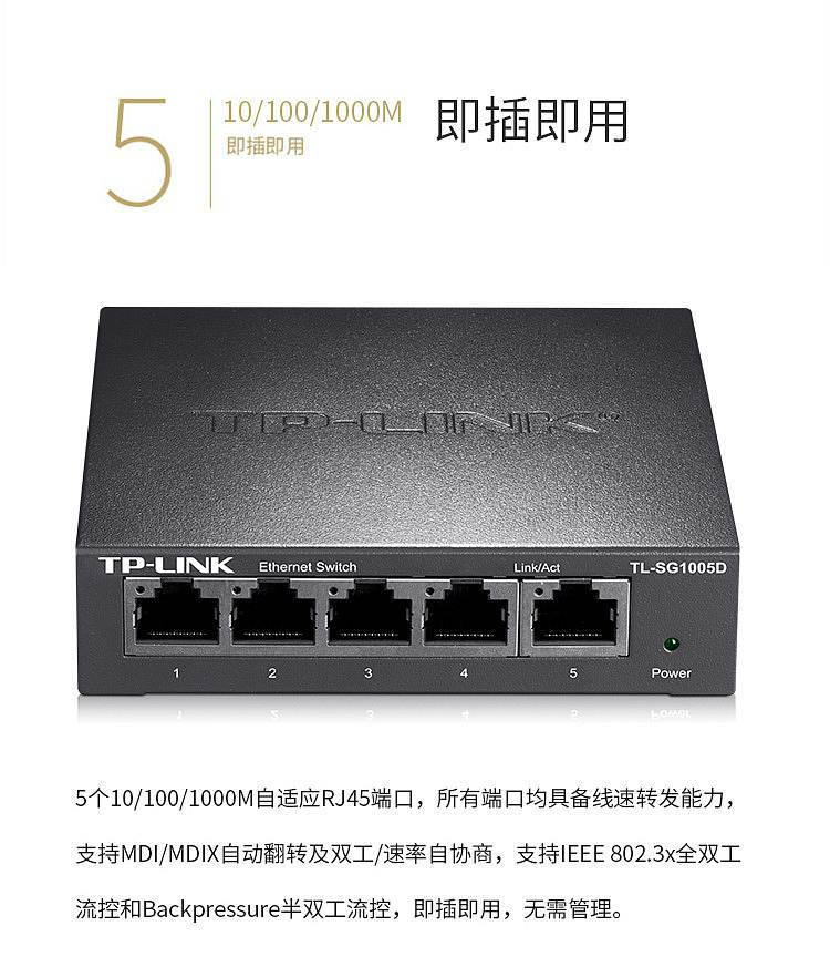 商品名称:普联/TP-LINK 交换机 (5口千兆) TL -SG1005D