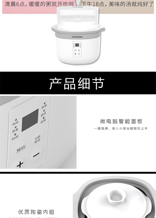 商品名称:长虹/CHANGHONG电炖盅 迷你小巧0.8L容量 DDZ-08HT