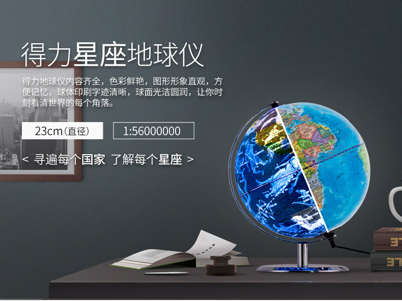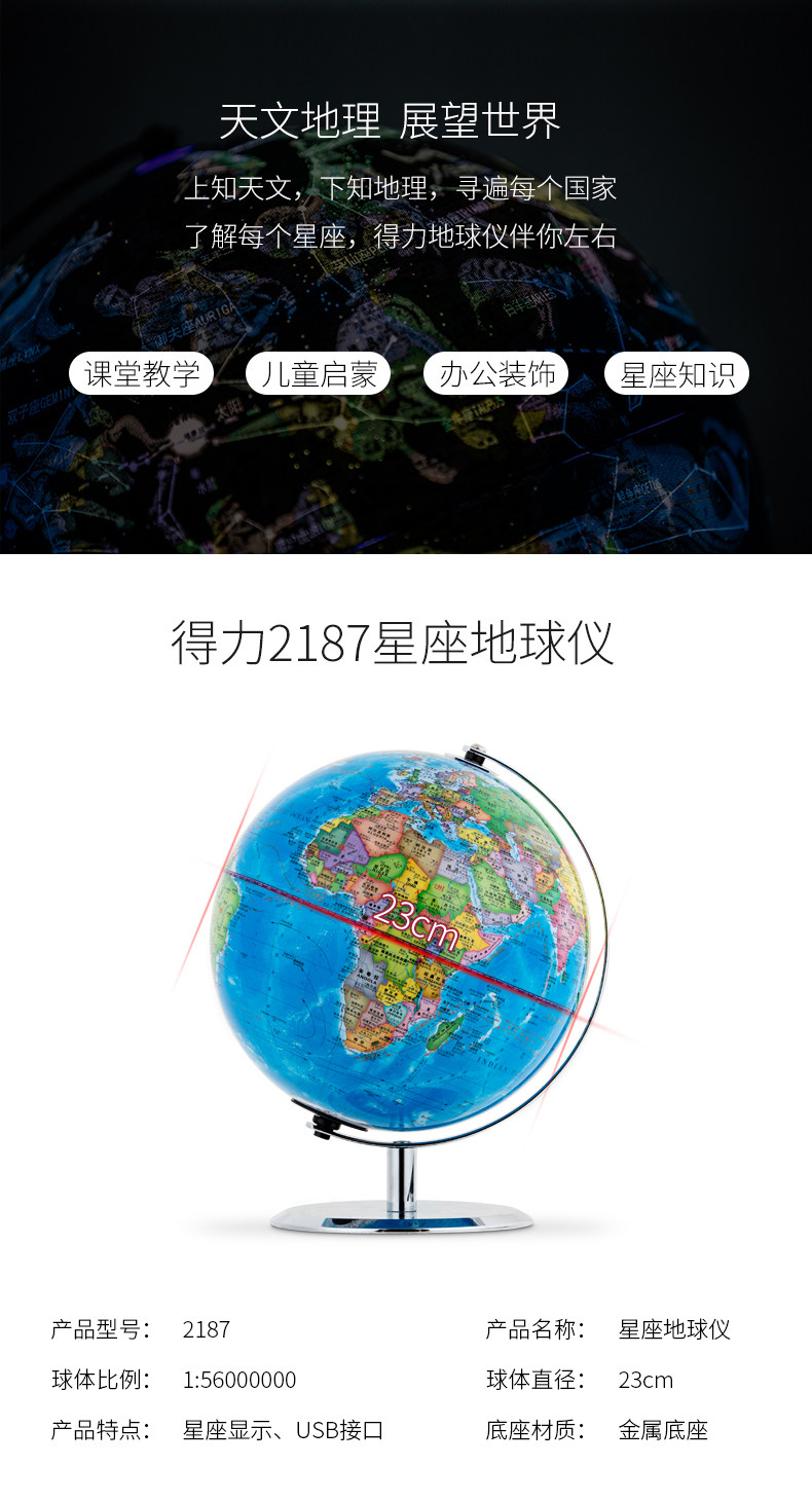 得力/deli 23cm 星座LED灯 地球仪 2187