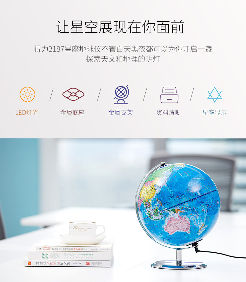 商品名称:得力/deli 23cm 星座LED灯 地球仪 2187