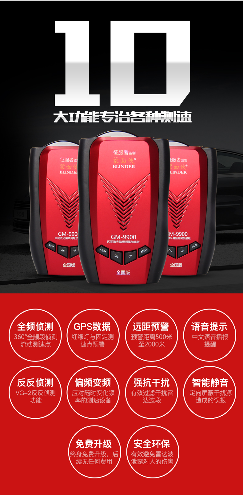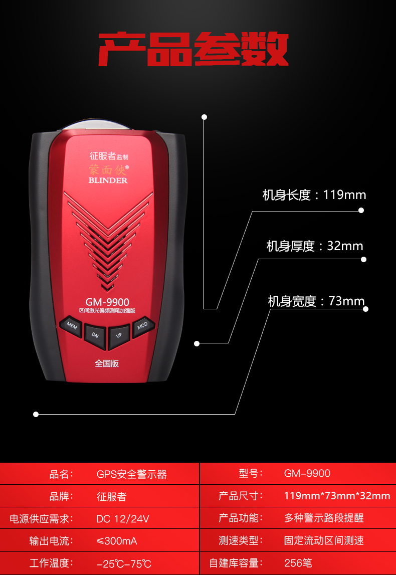 商品名称:征服者 电子狗贝尔激光雷达测速安全预警仪固定流动移动测速一体机 GM-9900