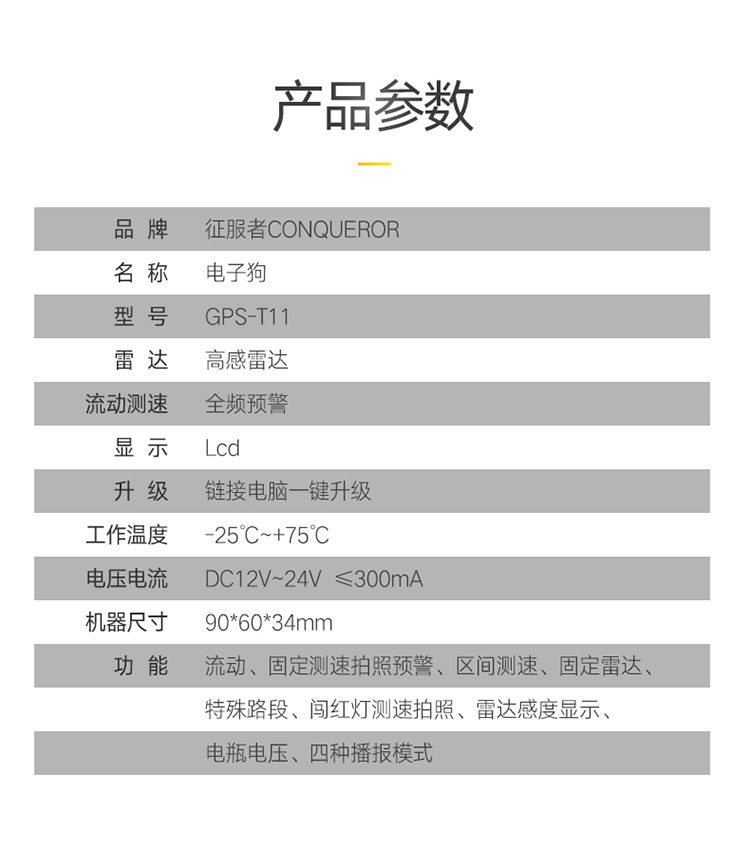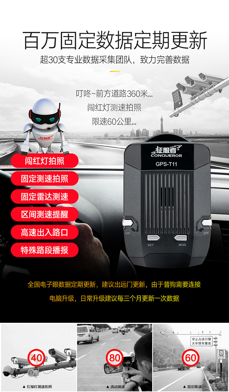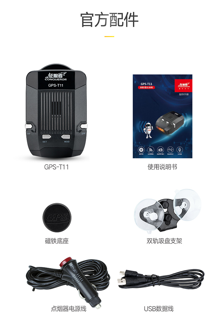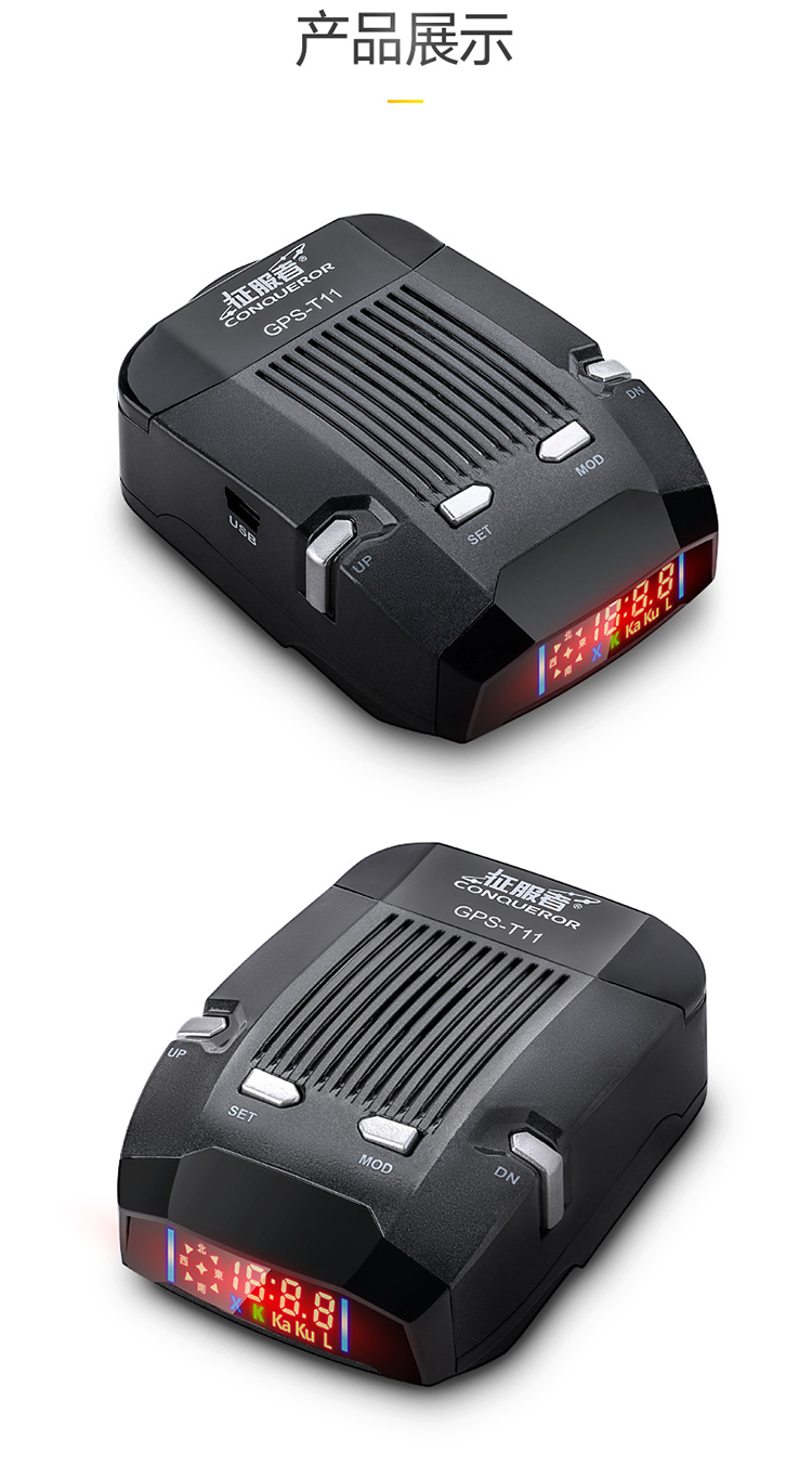 商品名称:征服者 电子狗固定流通雷达测速侦测安全预警仪车载智能升级一体机 T11