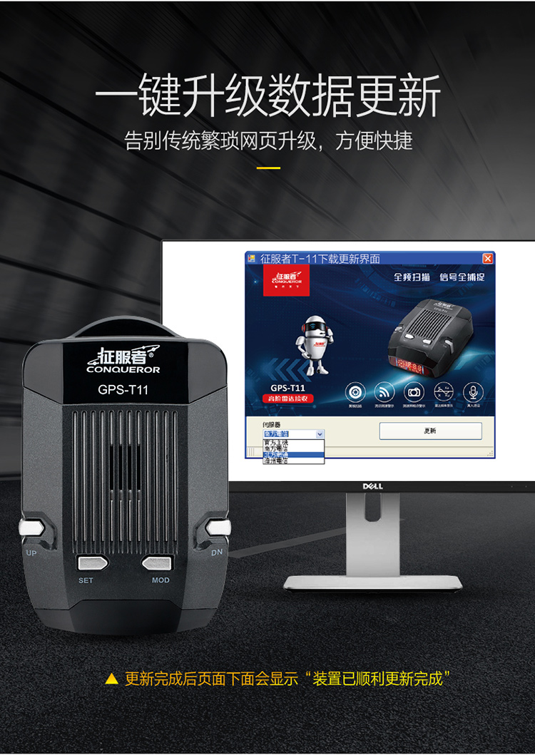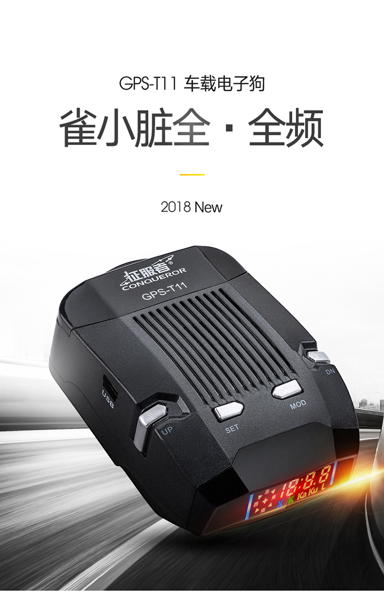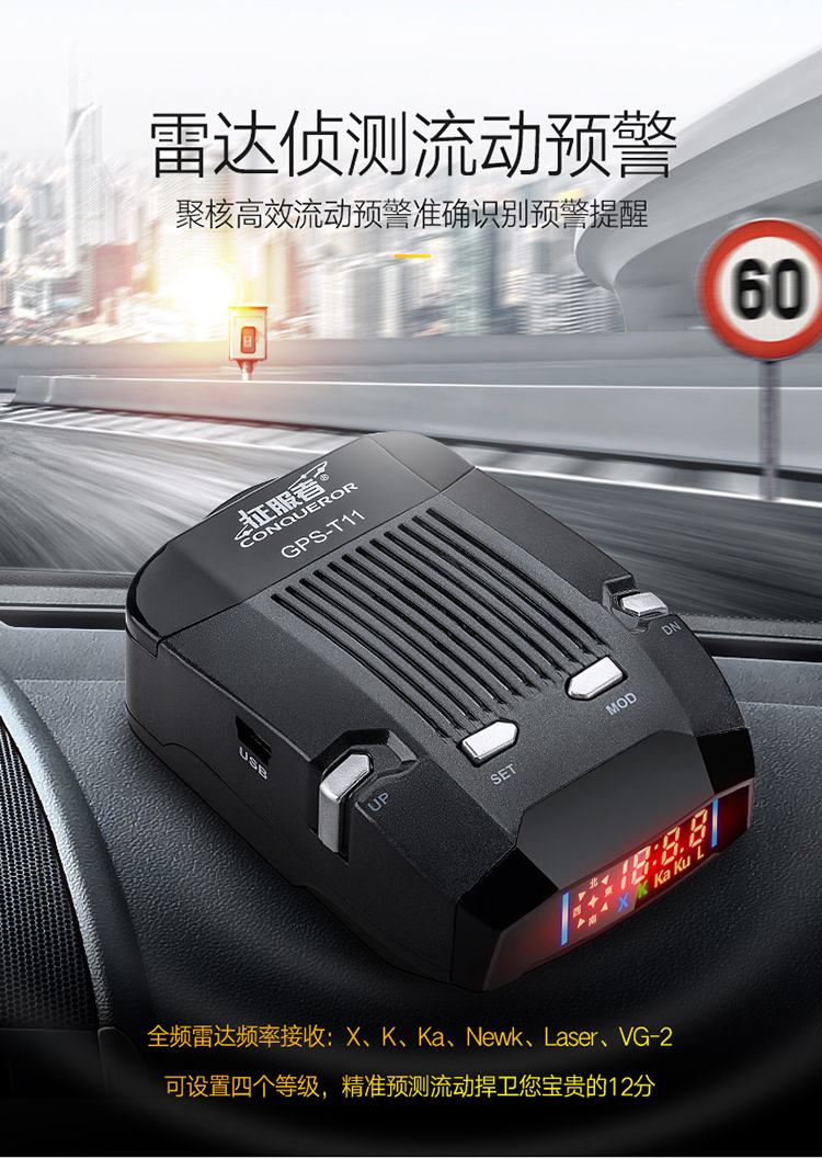 征服者 电子狗固定流通雷达测速侦测安全预警仪车载智能升级一体机 T11