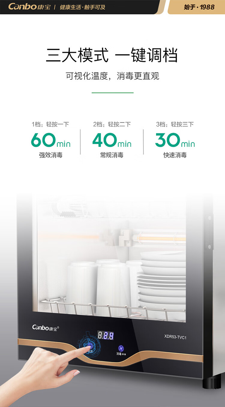 康宝(Canbo)消毒柜 家用 小型 高温立式 台式餐具消毒碗柜 迷你单门 茶杯厨房碗柜 XDR53-TVC1