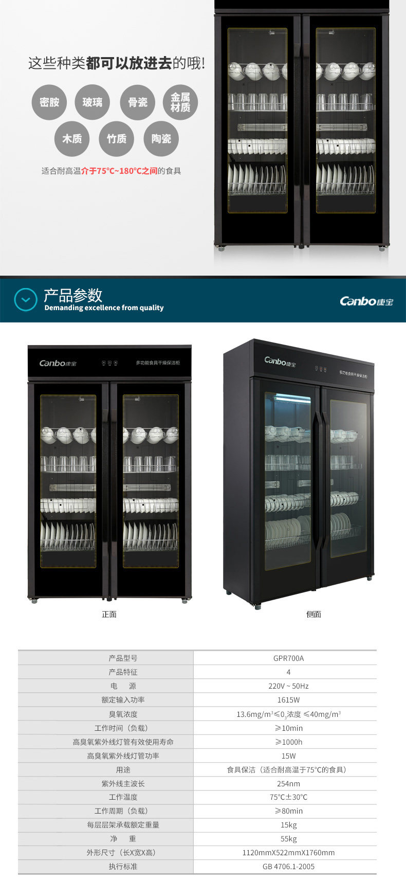 商品名称:康宝(Canbo)GPR700A-4 商用多功能食具干燥保洁柜立式 双门饭店酒店食堂餐厅保洁柜 大容量餐具碗柜单位:件