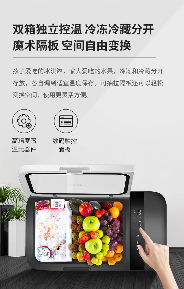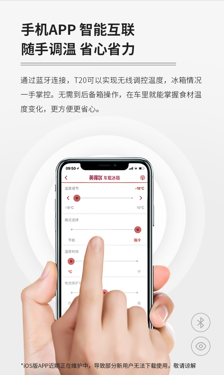 商品名称:英得尔 车载冰箱T20豪车标配APP双温双控Secop压缩机制冷20L迷你小冰箱车家两用